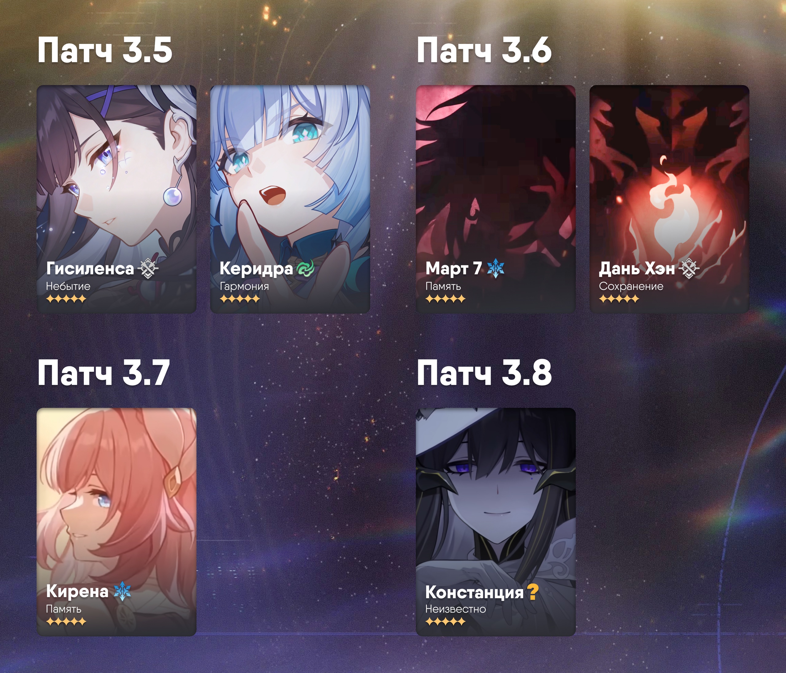 >>5160504 Так в Патче Гиси будет реран Кафки. Кафке не нужны эйдолоны и ее бис это ивент конус с Болком, который можно купить в виртуалке. У Гиси тоже есть бесплатная опция - конус с Искоркой из зеркала.