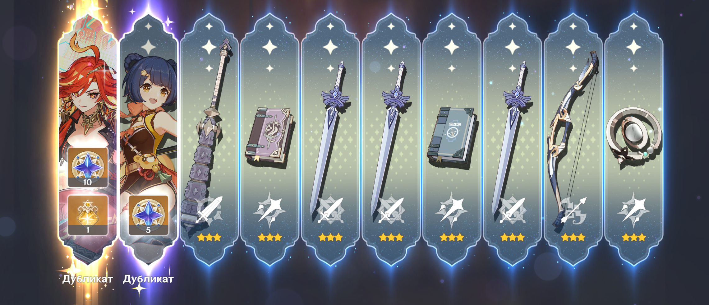 Всем бы такую выдержку. Я вот долго был чистым ф2п, потом покатился по наклонной и начал крутить оружку. И начало прикладывать так, как наверное мало кого в треде. Действительно видно нельзя крутить баннеры, где есть нечто ненужное. Вот из последнего - усмиритель бед. Не знаю, пишут, что на Эскофье подходит, но не уверен, что стоит небесную ось на него менять.