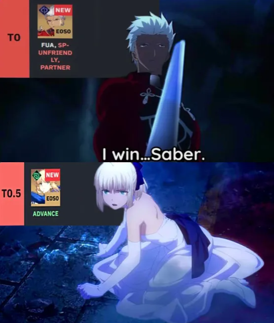 Зашел максимально непредвзято в тестран. Арчер прикольно говорит кринжовую тираду на ульте, сейбер на ульте тоже орет прикольно. Заберу Е0 обоих для коллекции. Хз, хорошие чемпики.