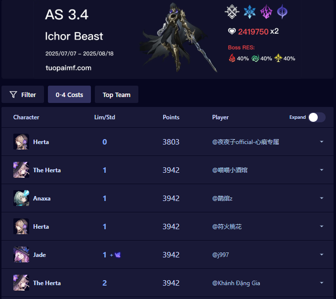 А теперь посмотри скрины и скажи мне, почему в лучших реузльтатах любого из этих персонажей нет ни одного отряда, где они были бы вместе, хотя бы в дуэте? Ведь гг памяти хуже, гиперкерри сетап это кал, а Блэйд на эйдолонах вообще краш Кастории. Это проходки жука из актуального зеркала.
