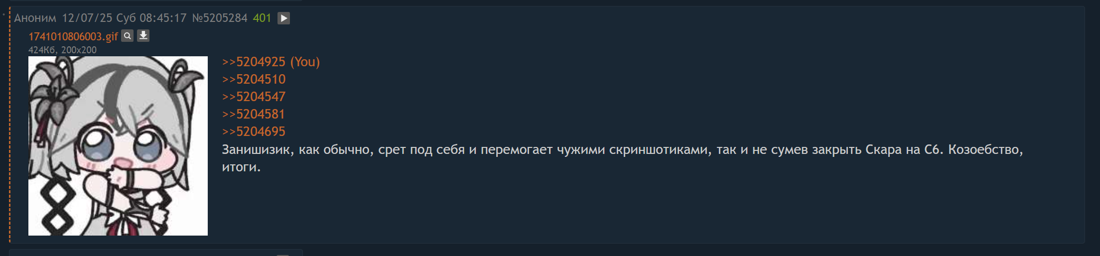 А у тебя больная тема, видимо, что твоя бездамажная коза сколько-нибудь кого-то в клире превосходит только если играть в копиумной нонсустейновой тимкомпе и надеяться, что не то что актуальным чемпикам, типа Кати, но даже давно вышедшим из меты, типа драконожены, не подвезут новых сигнатурных саппортов, с которыми они даванут козу в ее стойло.
