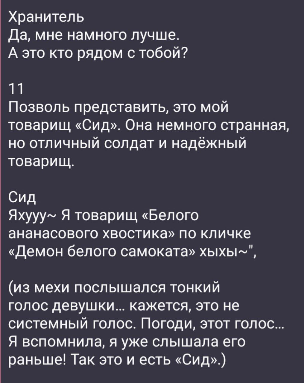 + Возможно девушка внутри Тирен, потому что говорит про запах Солдата 11, но это уже чисто мое предположение