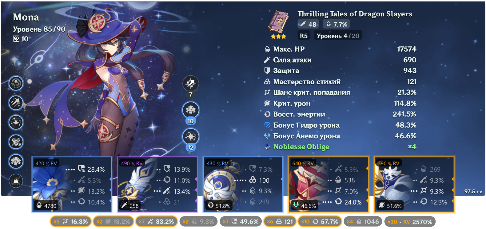 Ну и мса у тебя кстати мало. Надо 450-500 чтобы было под баффами от сапов. Если играть с Нахидой, то своего мса должно быть 200+.