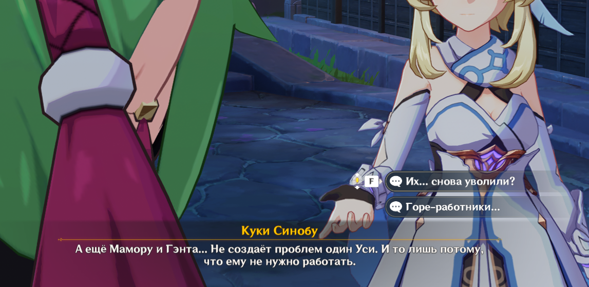 Кстати, вообще не понял этой сути, почему мне в истории про персонажа постоянно кого-то ещё суют? Вот сейчас вот с Томой делаю, а тут Куки почему-то ещё пришла, хотя по мини-карте вы видите, что там именно Тома обозначен. С Кирарой тоже Сянка стояла... Они просто решили к каждому персу ещё одного пихнуть, чтоб охват больше был? Но зачем? Это же тупо, не?