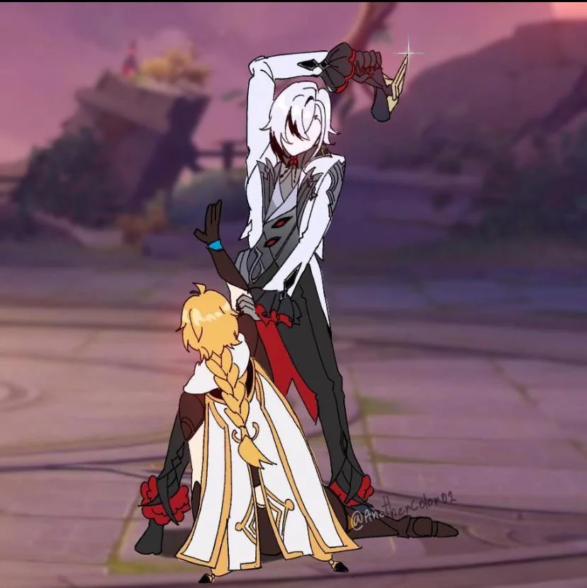 Алсо, кстати, квест с перевёрнутой статуей Барбатоса, с тем же Дайном, он тоже у меня тыщу вопросов вызывает. Не вижу там логичной связи, чтоб наш ГГ просто в тупую в углу сидел и смотрел, как там наш брат/сестра пиздится, а потом в портал заходит. Это совершенно не то поведение человека, который пол Тейвата на своих двоих прошёл и в любой жёсткий блудняк вписывался, чтоб хоть какую-то инфу про родственника узнать. Правильное поведение - это вставить меч в спину Дайна в крысу, а потом уйти со своим братеком хоть в бездну, хоть в Сызрань, вообще похуй.