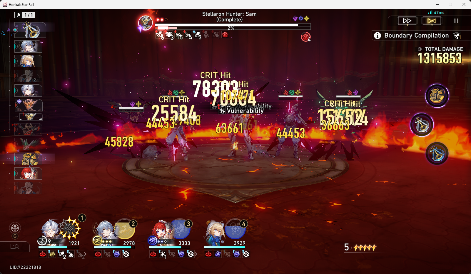 Ещё чутка из подобного нигде не обозначенного: Стоит включить в опциях шкалу действий с точными значениями, мастхевная штука для любого продвигатора, да и не только. Урон по пробитому дает 10% финального мультипликативного бонуса, хоть это и не всегда полезно, иногда энергия получаемая от атаки важнее. Резисты не убираются наложением фальшивой уязвимости типа Анаксы/Светлячка/Фаенона, враг всё равно будет получать меньше урона - то есть это не панацея убирающая эффект от подбора команды. Дефшред вместе резпен скейлятся до 100%, выше бесполезно, но чем больше тем сильнее. Резпен падает в эффективности слабее чем в знакомом всем Г, лишним не бывает.
