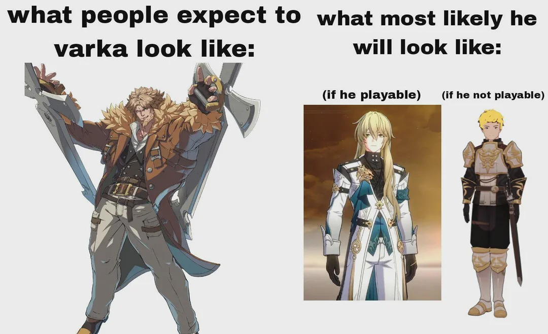 А так Варка выглядит(на артах) как раз кого базовички всегда просили, высокий кочка на массе, а не субтильный юноша. Посмотрю как ингейм этот дизайн переедет, сохранит ли широкую раму или усохнет до стандарта кейпопера.