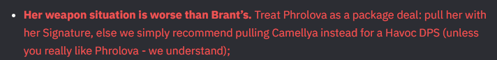 >>5282408 У тебя чуть ли не половина силы за сигной. Если будешь крутить с сигной, норм, не хуже всех остальных. А так, жди конца баннера, люди наиграются, сравнят с Кумой, и будет тебе вердикт. Сам буду ждать, потому что, как я понял, никаких QoL фич для попена, у неё нет.