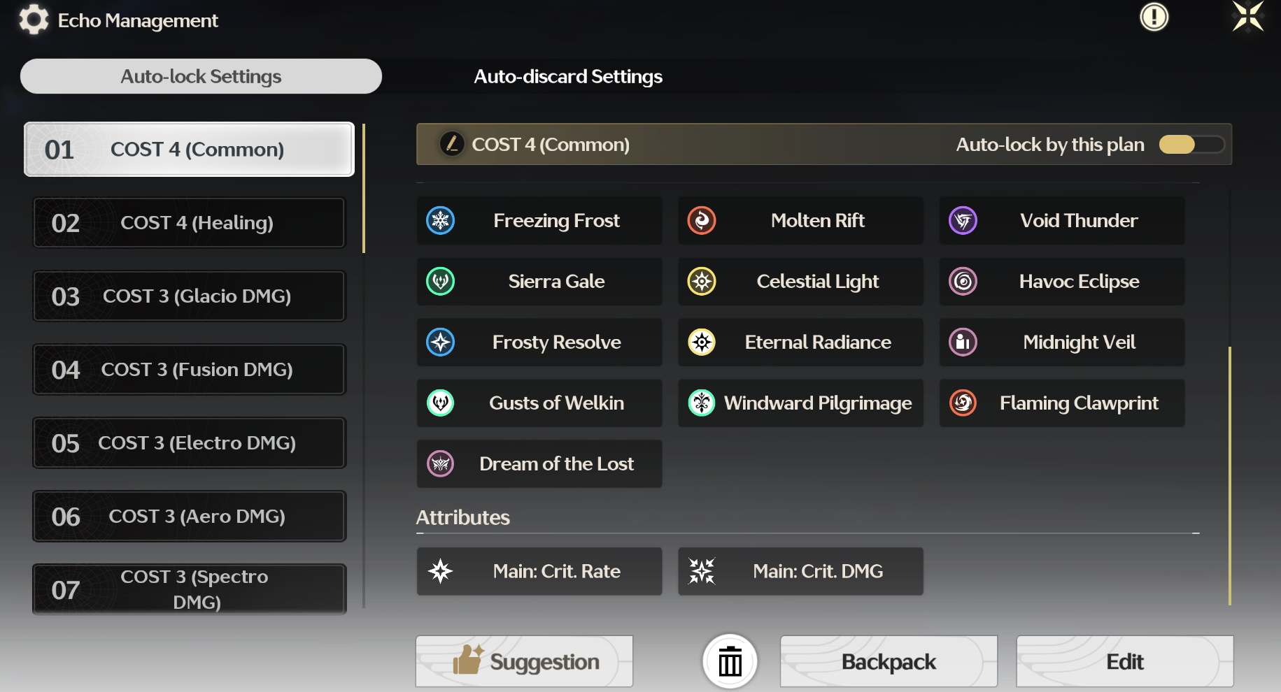 >>5284254 У тебя происходит автосортировка при любых действиях. Возможность не ебаться с этой ублюдошной системой стоит денег. Да, ты по прежнему не застрахован от того, что у тебя хлам получится при прокачке. Но прокачка столько времени не занимала никогда. Из тысячи эхо, ты через несколько интераций, пополнишь свои запасы нужных, просто за пару минут. Просто указываешь что тебе нахуй не нужны старые сеты, никакие, и вуаля, стабильно имеешь в списке только то что относится к новым, и нужных мейнстатов.