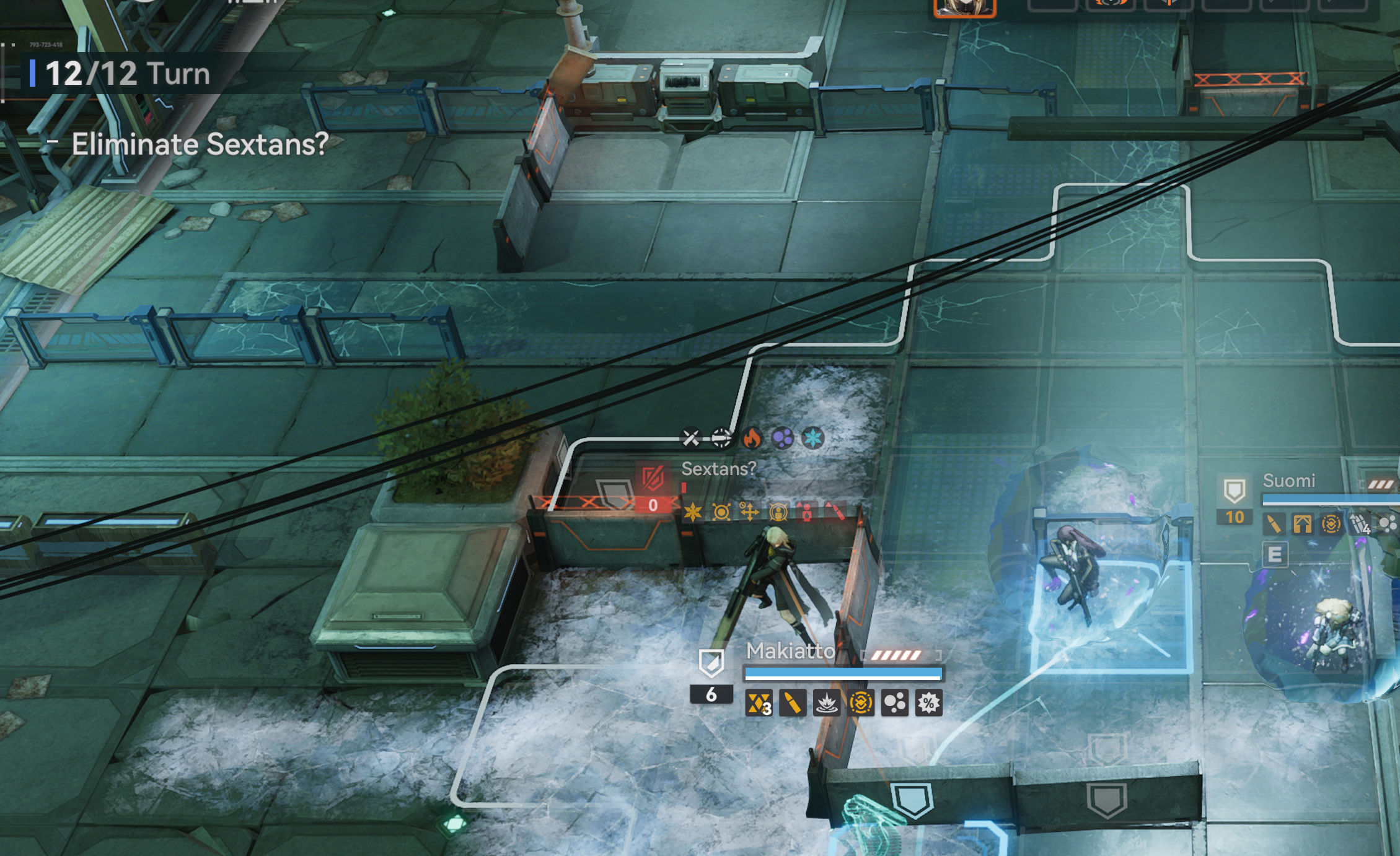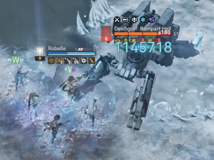 3. Тактика: Суоми кидает щит, Спринга ультует. Надо максимально увеличить жизнь команде чтобы они выжили после обратного дамага от босса. Плюс эти же двое убивают спавнящуюся мелочь чтобы она не давала боссу бафаться и не отвлекала основную тройку от босса.