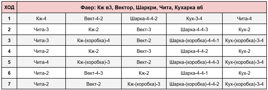 2. Команда: В6 Чича, В6 Шаркри, В1 Вектор, В1 Суоми, В0 Спрингфилд. Все с сигнами.