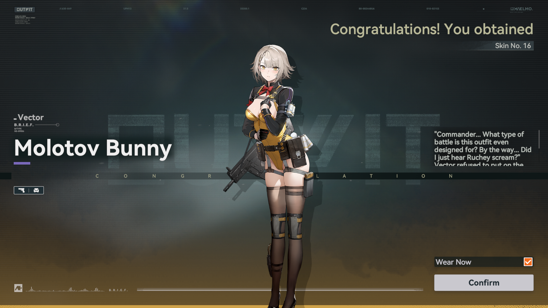 В итоге самая элитная кукла на Эльмо - Вепли. Ей не нужен ебучий мотоцикл или меха, что крошить ебальники варягам. Она умеет в сарказм и танцевать. Ее оружие - Dissident Arms KL-12 ELITE. И, наконец, самое главное - у нее панцу в полосочку.