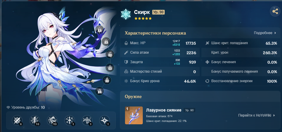 На 10 лвл навыка она на 10 секунд после попадания Ешкой снижает резисты от Гидро/Дендро на 25%