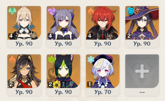 Итого в пачке: Лаума, Нахида, Нилу и Айно — 2 нодкалыча. Либо крути Калумбину, которая по неизвестной причине считается за 2, либо пачка лишается одного стака.