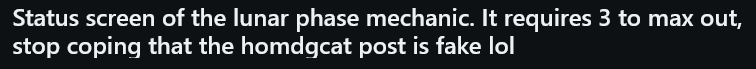 >Каждая израсходованная Зелёная роса также наделяет Лауму одним уровнем Песни луны Что, блядь, делает Песнь Луны - нигде напрямую не написано. Только в сноске указано, что может быть три стадии в зависимости от потраченной Зеленой Росы