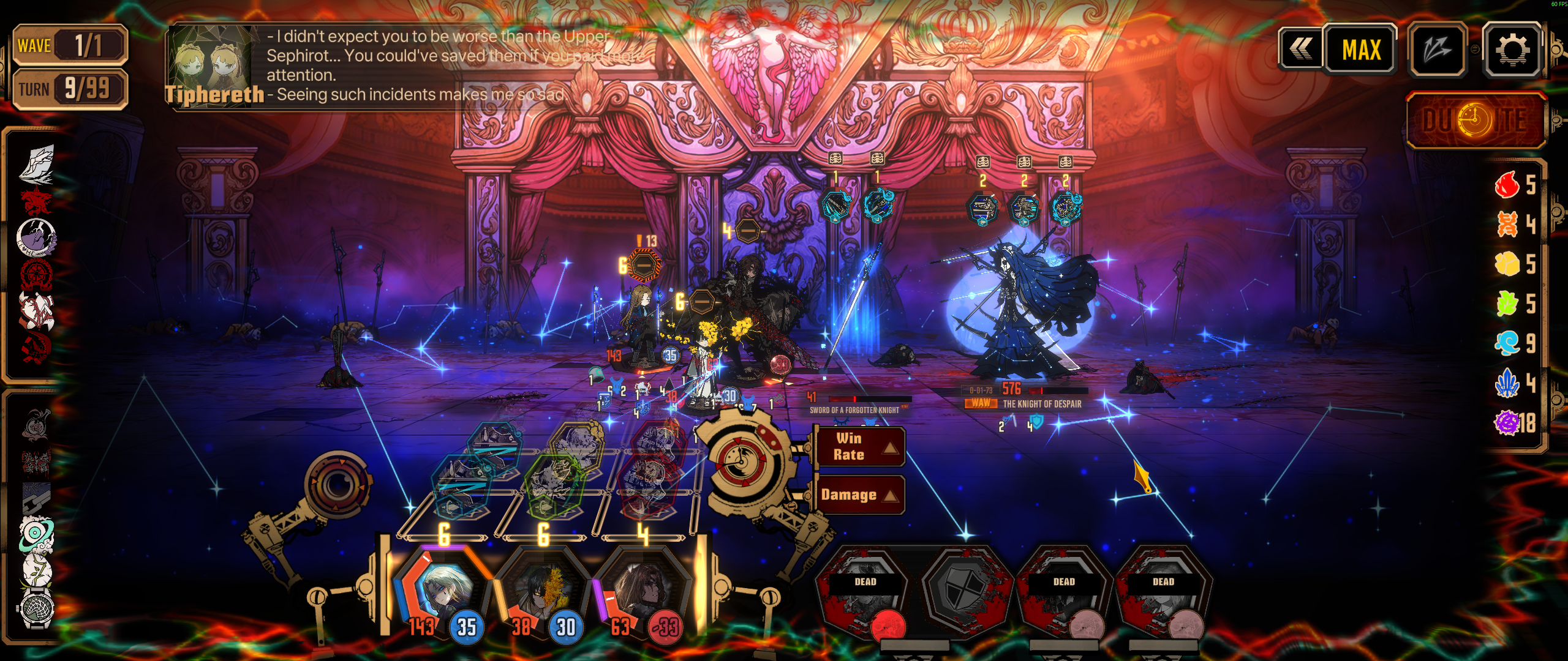 >У тебя тейк буквально Нет, мой тейк в том что игра имеет огромное множество разных механик, взаимодействий и синергий, но однообразный формат калтента баланс части этого калтента и паверкрип направленный на высасывание круток нишевость упоминаемых взаимодействий не поспеваемых за паверкрипом релизов уничтожает otherwise богатый идеями и потенциалом ростер идишек и ЭГО накопленных в игре за два с половиной года. >однообразный формат калтента Практически каждый режим можно свести к "Clear within 10 turns". Я уже объяснил каким образом это делает множество механик тупо неактуальным, поэтому объясню на примере. Есть другая гача, Reverse 1999, абсолютно та же история статусная пошагоублюдия с паверкрипом, но в ней есть множество режимов, которые ставят принципиально разные задачи. Большинство среднего контента (сюжетка и лоупаверлевел калтент) это "Clear within 10 turns", A series of Dusks - аналог МД. Mane's bulletin - неуязвимая абнормалька с полосками жизни, с которой при "смерти" не слетают дебаффы, задача сбить как можно больше полосок (либо определённое количество для наград). Lucidscape - 3 волны гуманоидных с боссом (утрирование под реалии лигмы), у противника бесконечные реинфорсы, но убийство каждого подсоса снижает боссу хп. Reveries - уровни ендгейм паверлевела с жёсткими стейдж условиями и пассивками противника, которые превращают игру больше в паззл. Moth Code (не помню как обзывается тк периодичный режим) - суперпошаговость, механики связанные с ходами работают точно так же, но resolution действий происходит внутри хода для каждого действия, а не в конце хода проигрываются все действия. Если у чейнбаттлера накапливается S3, то им можно произвести ретритоублюдию для активного персонажа активировав S3 и не потратив очко действий. Limbo и каждый 5ый уровень\еженедельник Reveries - 2-4 этапный уровень, персонажи из одного этапа нельзя использовать в другом. Puppet arena - игра играет за тебя Winrate'ом, твоя задача только собирать пачку. UTTU (удалён) - на каждого персонажа можно повесить уникальный бафф или статус + внеперсонажевый слот с 2мя уникальными баффами на всю команду. Нужно пройти на скорость набор из нескольких этапов, внутри которых можно как угодно менять состав команды и баффов (было стартовое ограничение на членов команды, но не имело значения, тк слишком много персонажей позволялось взять).