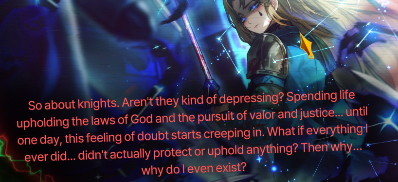 Чет какая-то хуйня происходит с приоритезацией клэшей в ивенте вальпурги. Такое чувство, что каждая твоя атака против Рыцаря засчитывается как ЭГО/s3 атака и проигрывается вне очереди. Уже который раз вижу, как я ставлю первым слотом клэш с мечом, а вторым с аномалией, но персонаж вместо того чтобы клэшить по порядку срывается и бежит танковать ебалом красные монетки, вне зависимости от того, что против меча ты клэшишь ЭГО, а против аномалии s1. Как будто у Рыцаря все атаки имеют статус дальнобойных из урины и получают приоритет перед всеми остальными.
