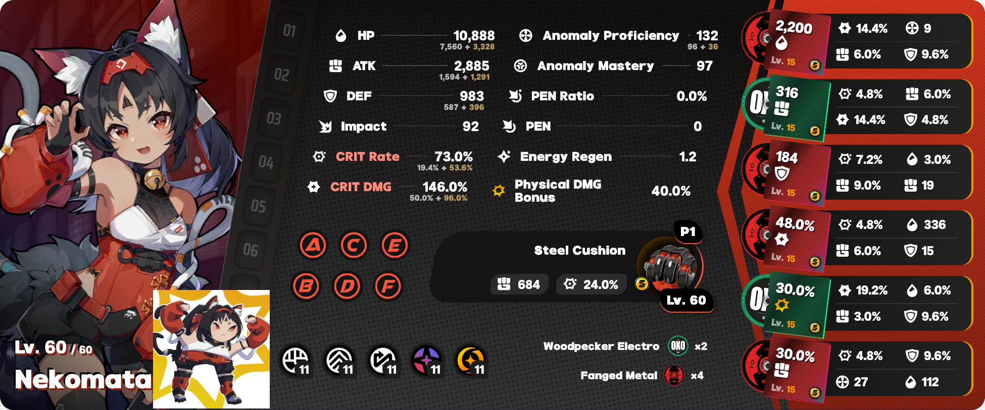 мияби так то по сути самый простой герой в сборке, селф баффов дохуя, все сабки утилизирует, в 4 и 5 и 6 несколько мейнстат опций, атака имба, аномалия и флат пен почти как крит