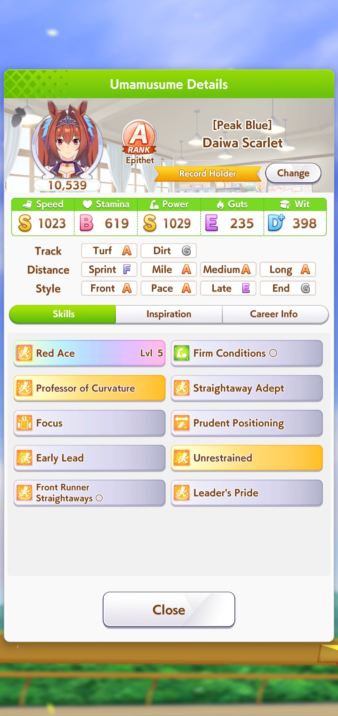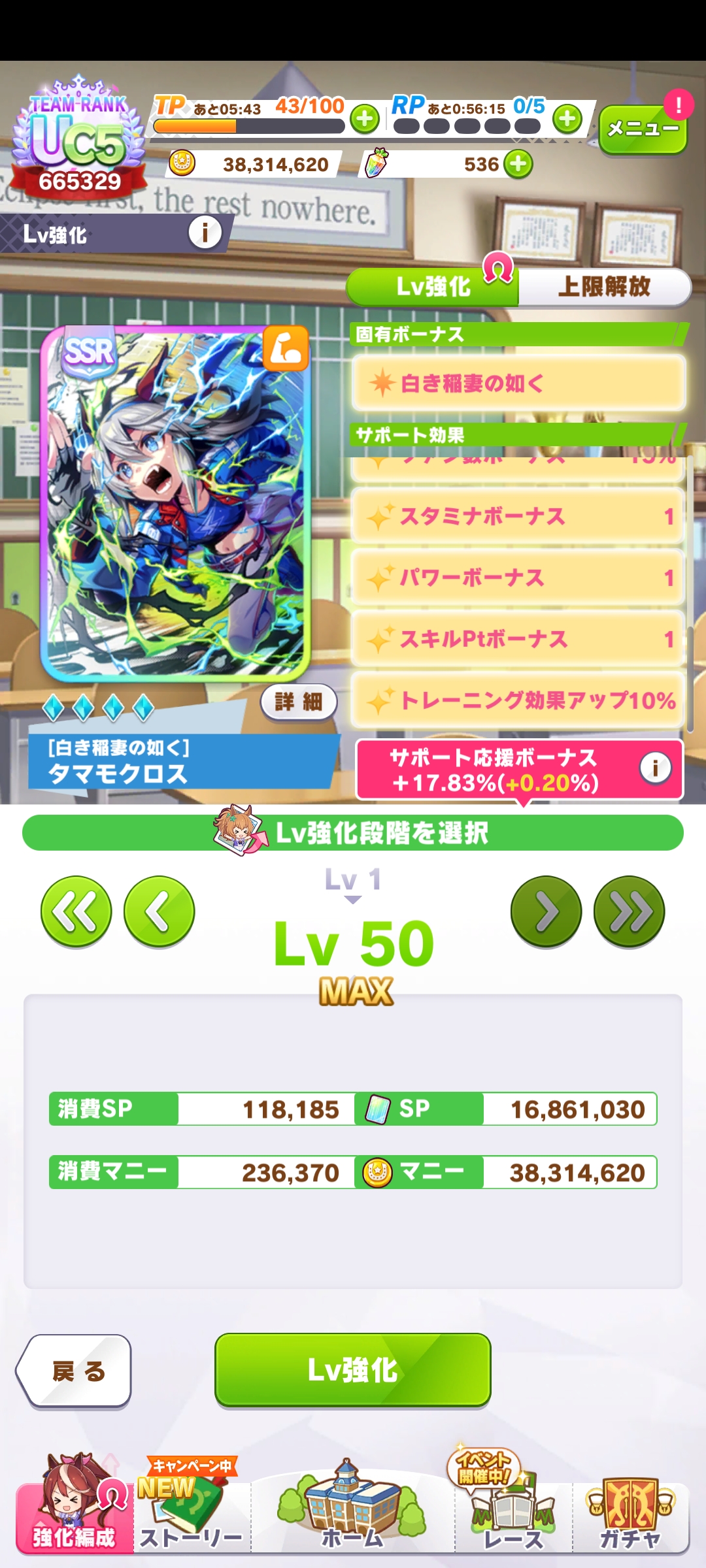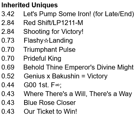 >>5346926 Вот энд раннер с 0 лузов в карьере. Им скорость вообще почти не нужна, а вот павера надо по максимуму. Проблема в том, что хороших карточек на павер критически мало. Попробую занять SSR водку вместо супер крик, и упороться в ещё больше павера, здесь явный перекач стамины, как по мне. Хотя возможно это из за того что в легаси умах в сумме 15 спарков стамины было.