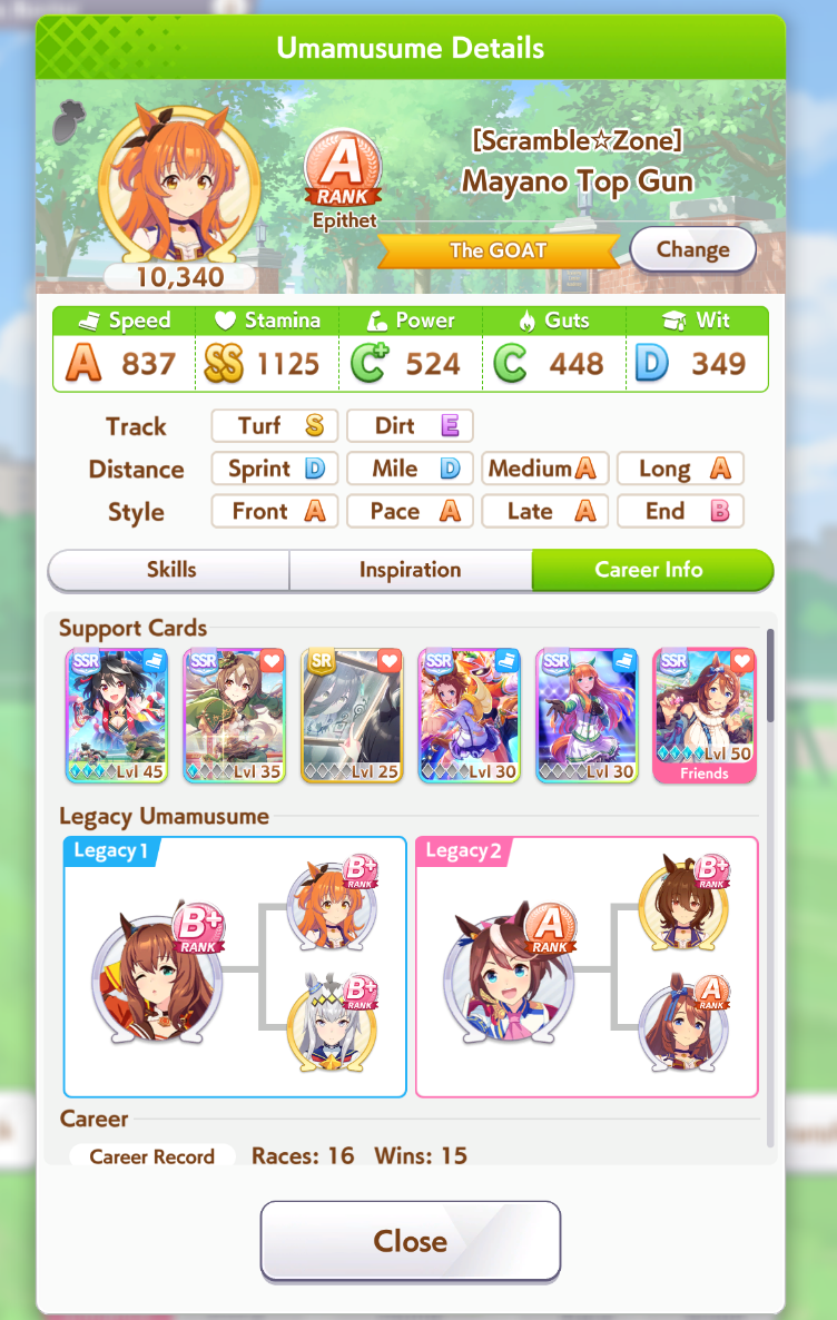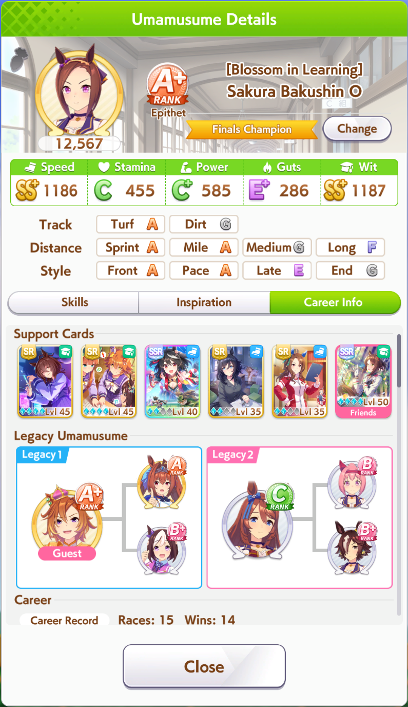 >>5339814 Лошади это просто палки для статов, этой игре успешность определяется саппортами. Без саппортов даже топовые лошадки будут страдать даже в начальной URA карьере.