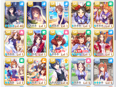 Так, ну раз вчера ночью большинство Тренеров спало, то решил спросить у бывалых и опытных игроков сейчас. В общем потыкался пока на том акке что первый и за 172 нападало вот так. Вычистил все доступные сторики, сейчас URA за Урару играю, на втором особо не тыкался так как я его дал челику который тоже решил попробовать игру и он может в любой момент махнуться акками. Теперь к самому вопросу: Карты, которые накезились у меня на первом скрине прям вообще юзлесс параша? И если терпимые, то успею ли докрутить оставшиеся 28 круток до спарка Китасан, а то как я понял она под самый конец решила задинмаить меня.