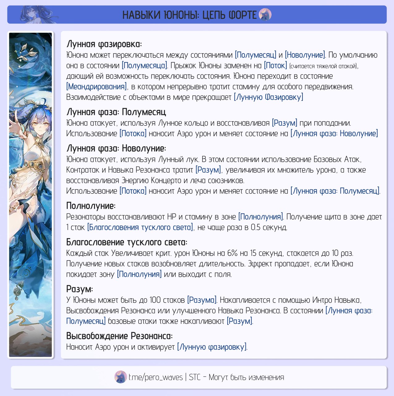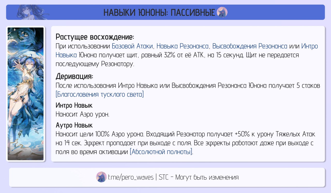 Судя по расчётам сама Юно не особо и дамажит, в связи с чем её к той же Зани не поставить в пачку, поскольку будет просто замена шила на мыло. Наверное можно поставить в пачку к мдд Фиби, но непонятно что с ротацией.