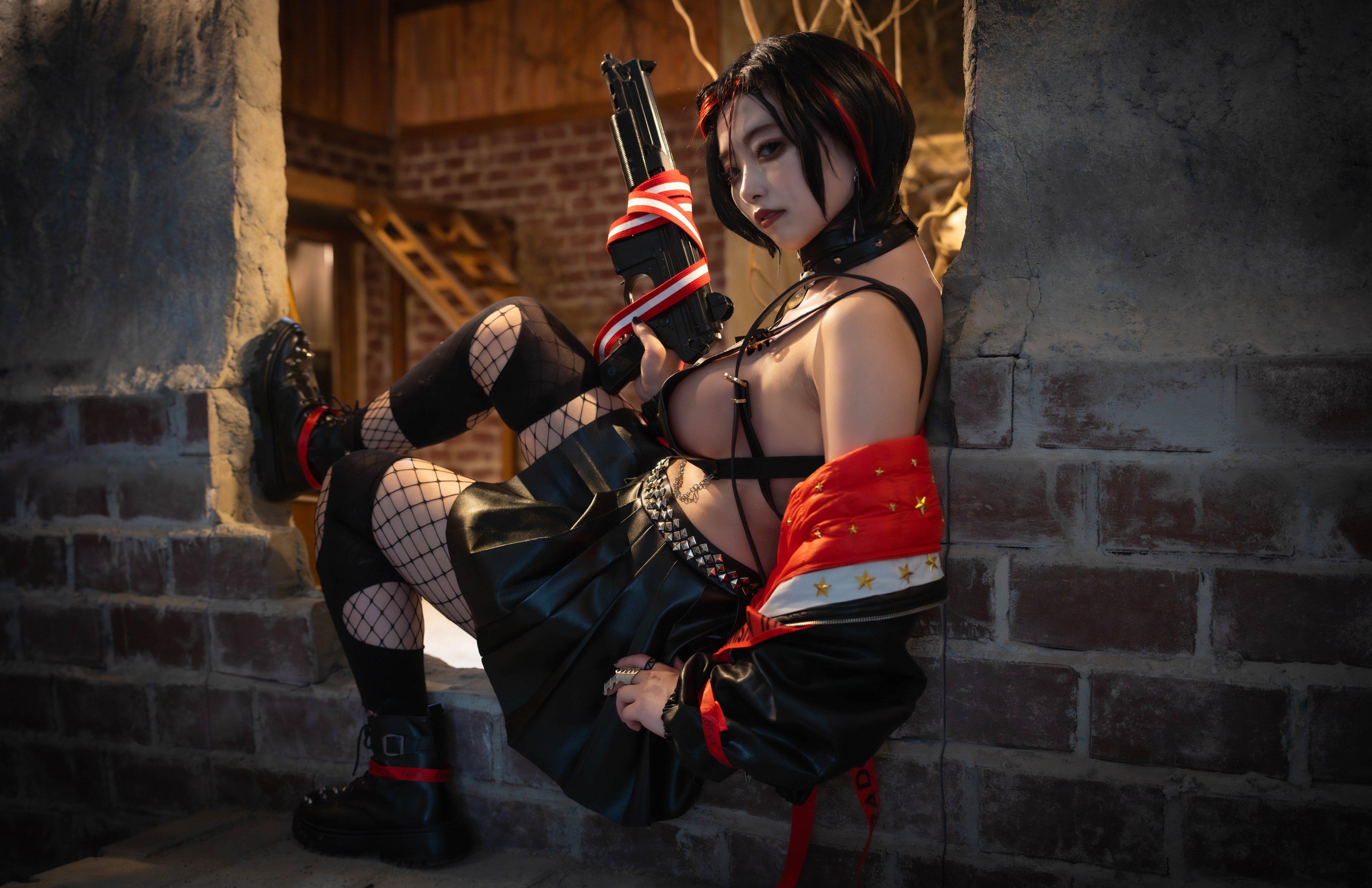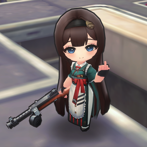 Убрать юбку/пальто (она та, кто скрывает большую часть своей попы в группе). Исправить поворот головы (это касается не только этого изображения, это также заметно в недавнем PV для мероприятия). Изменить лицо в позе для стрельбы, чтобы оно соответствовало позе стоя (у неё пухлые щёчки, как у младенца, что не соответствует её образу «старшей сестры»).