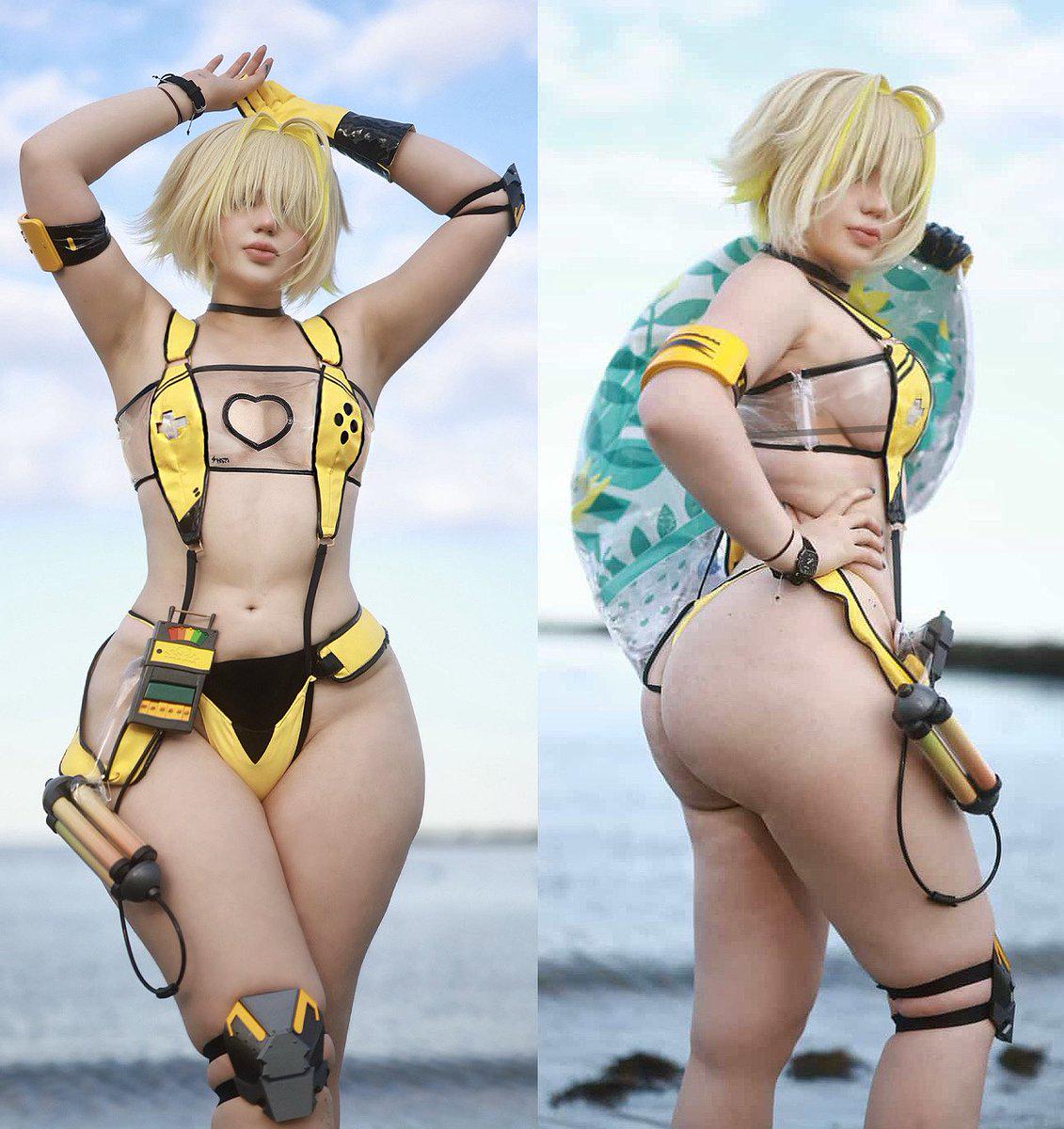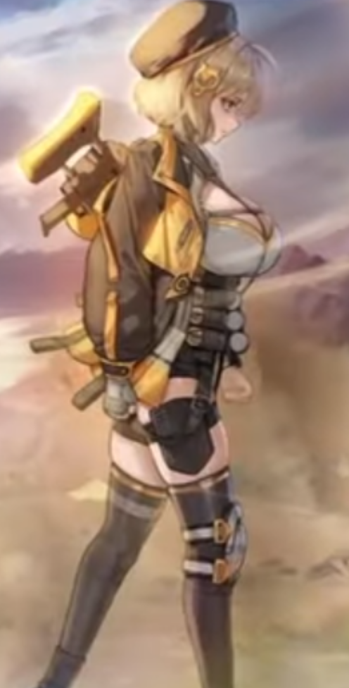 И снова: спрятанная задница в позе для стрельбы, другое лицо (меньше «атрибутики старшей сестры», как вы это называли раньше) и чрезмерно повернутая голова.