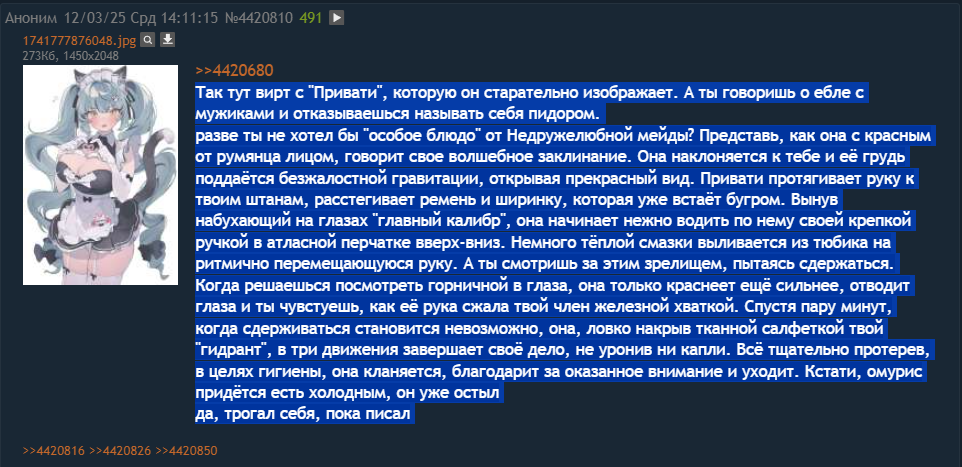 >>5346967 >Вы спрашиваете, предвзят ли я к юри Ты не просто предвзят, ты больной ебанат, записавший в юри Нагу, Тию, кроликов, чирлидерш и т.д. Это ужас, представляю че там в голове у больного корейского гачадебила юриборца в 2025 году. Надо уже писать пасту про фотон юрикала или типа того. >Он просто плохой писатель Не хуже и не лучше среднего уровня по больнице. Не надо так сакрализировать уровень корейской писанины, глобально он находится на дне вместе с китайским нейрокалычем. >Если вам нравится чувствовать себя бесполезным наблюдателем, не вовлечённым в происходящее А ты и так бесполезный наблюдатель. Сценарист скажет тебе не стрелять в Кроу - ты будешь стоять и терпеть. Нейронка скажет тебе кринжово танцевать с вапаусом - будешь танцевать. И так далее. Терпи, терпи, ты рожден, чтобы терпеть... Если, конечно, до текущего эвента у тебя не было 100% синхронизации с поступками и фразами гг тогда соболезную нахуй >Вам понравились Аркана и Сора Понравились, но через пару дней традиционно стало похуй на них. Это филлерные персычи, про них потом вспомнят дай бог через год. Поэтому максимально похуй + поебать. Вот на что мне НЕ похуй, так это на истории долгоиграющих сюжетных персонажей, в которых нейронка заложила хотя бы 2 токена информации. Пилигримы из их числа.