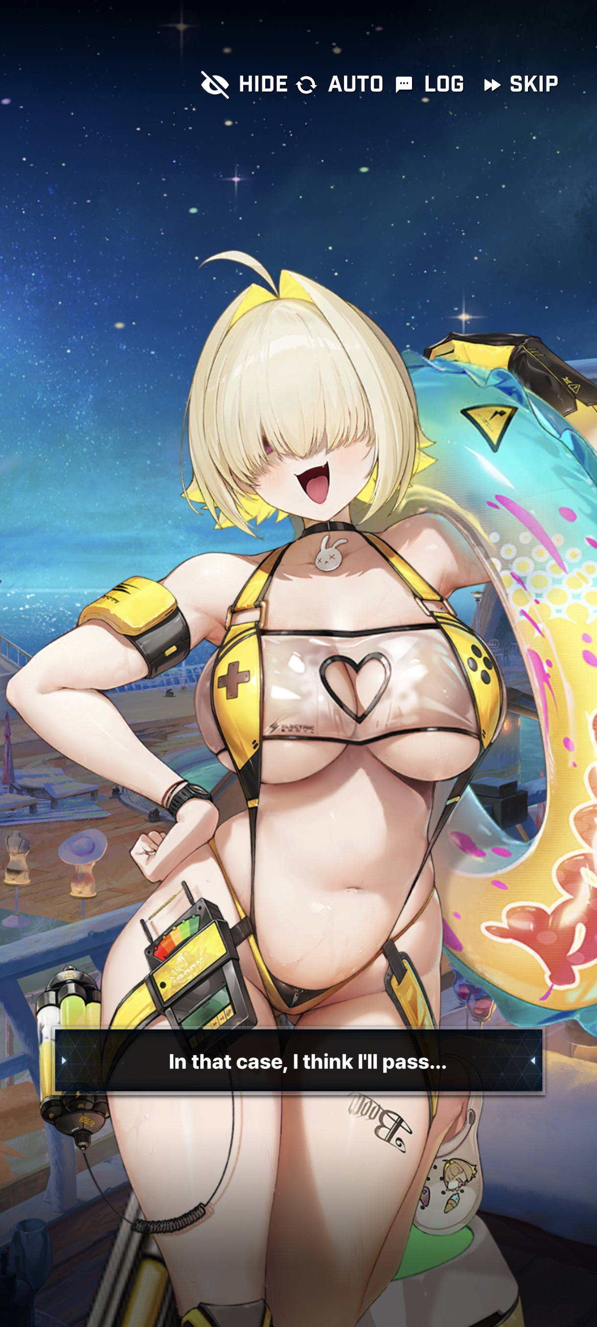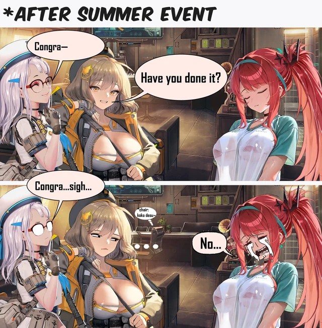 Читаю эвент, начало кайфовое, все озвученные приятно читать, история начинается интересно, дошёл до момента с купальником Олега и просто дропнуть хочется, что шкикан ответил "нет, спасибо" на предложение поиграть с её купальником. Просто ну тотальная хуета.