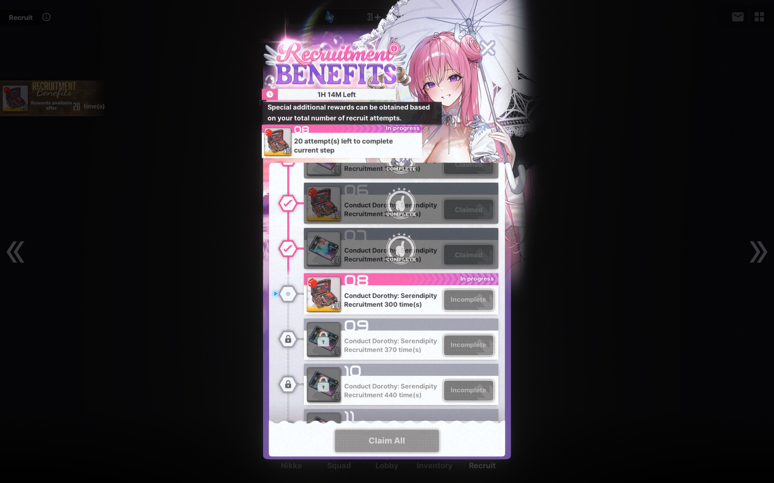 3.3 14 Days Login Event - TACTICAL UP Event duration: From the end of August 7, 2025 maintenance to 4:59:59, September 4, 2025 (UTC+9) Log in at any 14 days during the event and get rewards. Get Advanced Recruit Vouchers and development materials when you log in for 14 days straight.