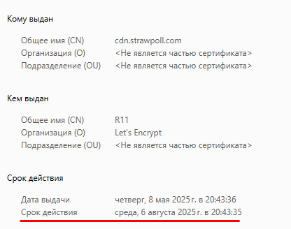 >>5369494 Лол, вжушки. Не обновили ssl сертификат. Пользуйтесь, дети, acme.sh или certbot. Там есть автоматический перевыпуск без заморочек. На крайний случай напишите скрипт интеграции с api вашего хостера на баше.