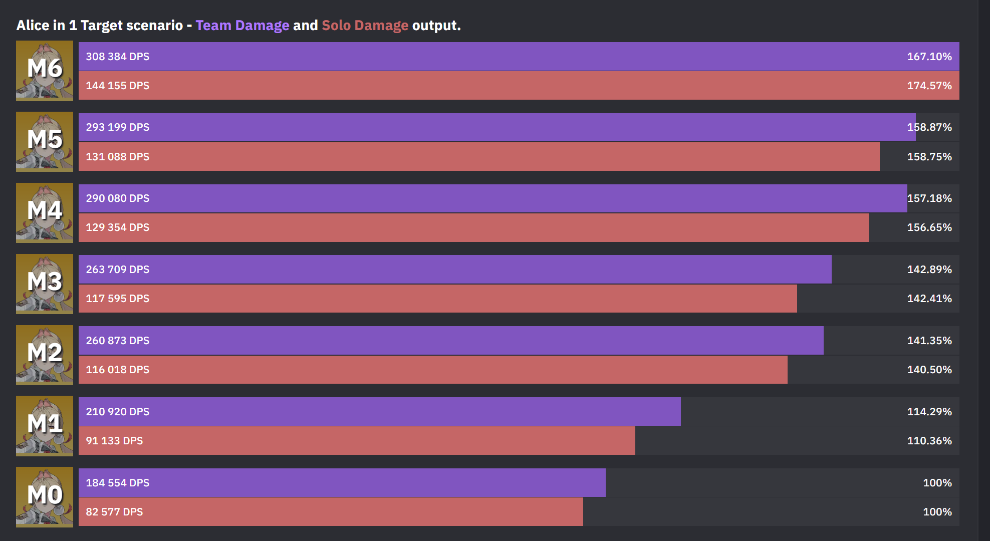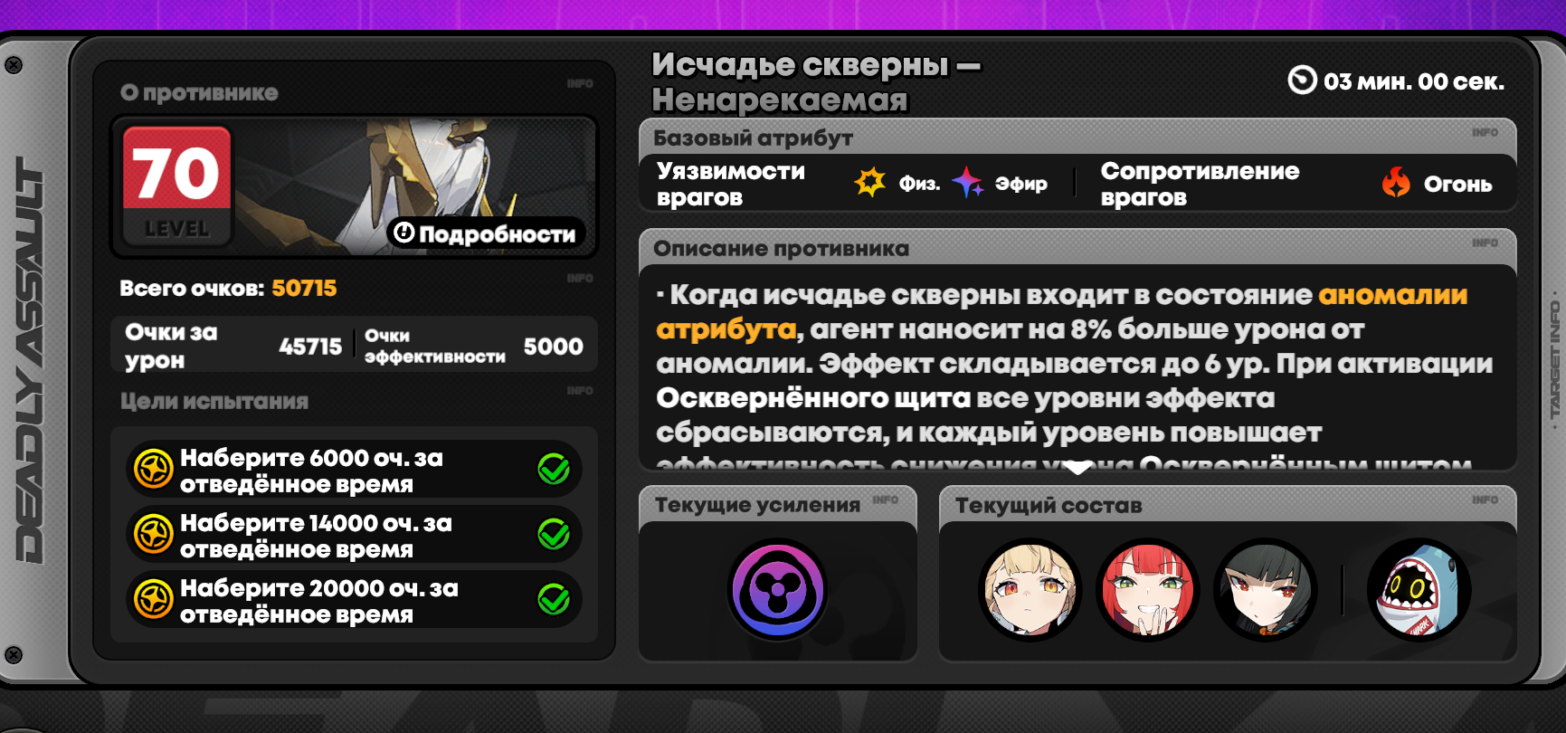 Судя по моим прикидкам, если будет М0Р0 Юзуха и М0Р0 Алиса, М0Р0 Виви, то вполне можно 50к ебануть но это будет супер сложно, надо будет выстроить бой так, чтобы ты ни разу не проебал срабатывание дисордеров и не уперся в кулдаун наложения. На пипке у меня это получилось, почти, два дисордера за весь бой проебал кажется. На Алисе с этим еще сложнее кстати, ты вечно воюешь нахуй не с боссом а с кулдауном на аномалию. Но в среднем М0Р0 командой 47к будет набиваться.