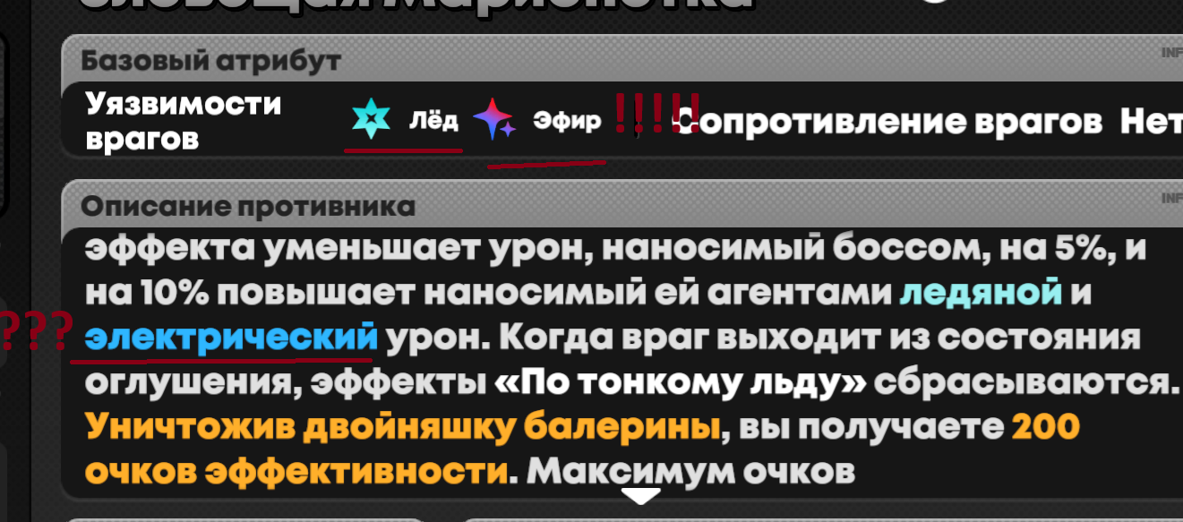 >>5382144 Не знаю, у всех ли так - но эта часть описания у меня еще и невидимая, за границей отображаемой колонки, то есть баф нужно еще выделить и пролистать, чтоб узнать, что у босса с ЛЕДЯНОЙ и ЭФИРНОЙ уязвимостью в бонусах ЛЁД и, сука, ЭЛЕКТРИЧЕСТВО!!