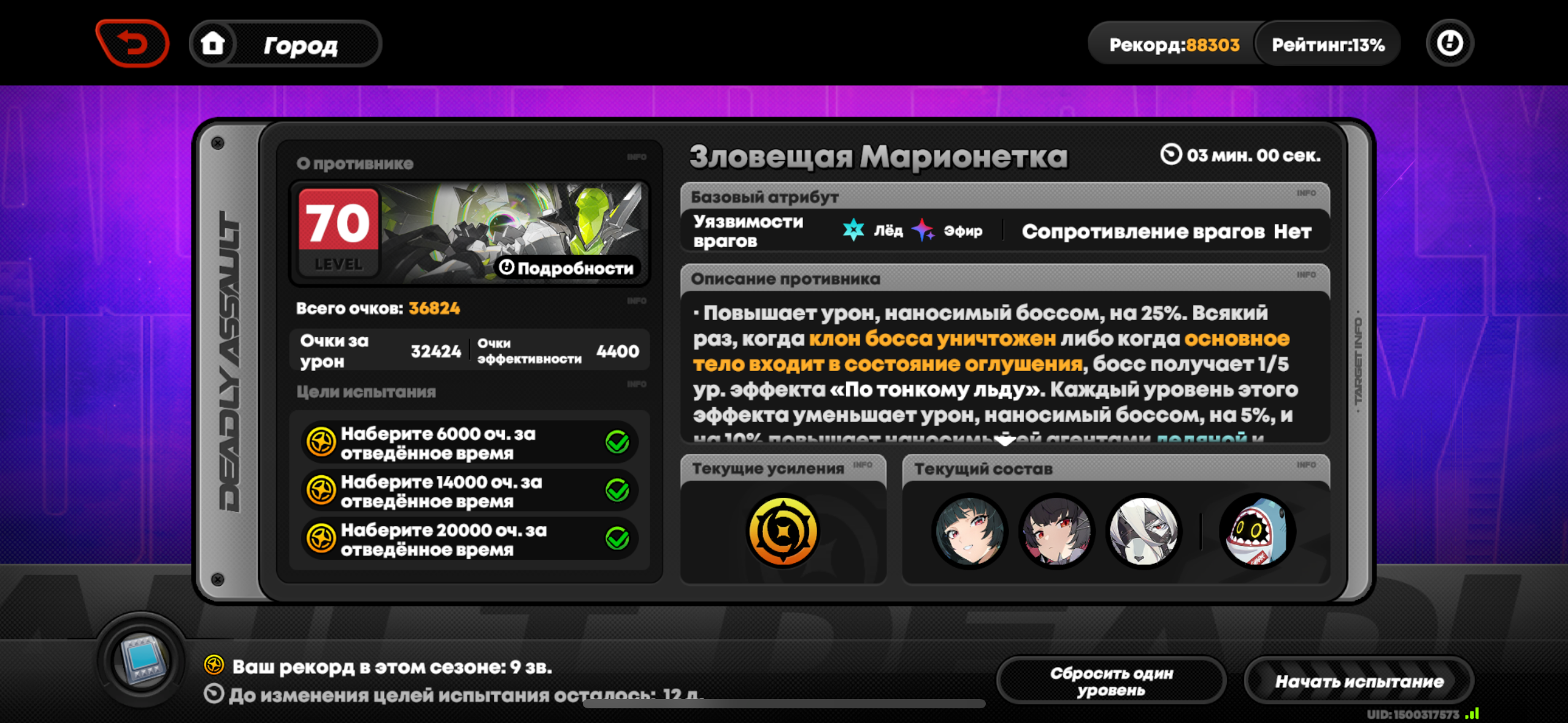 Смог таки, жестко пересобрав все имеющиеся тимы. Но копша до сих пор живет. Пусть и не сильно. ТО что Люси наконец пригодилась это крута. А Алиса ебашит с Юдзухой просто на любом боссе, пришлось даже Мияби убрать, и заменить на Пайпер, всего пару тыщь проебал. А еще каким-то образом в тиме Алисы юдзухи и пайпер прокает дизордер, хотя это блять моно физа. Видимо я проебал момент и фраза "прок 2 разных аномалий для хаоса" подразумевает что это две любые аномалии, даже одинаковые