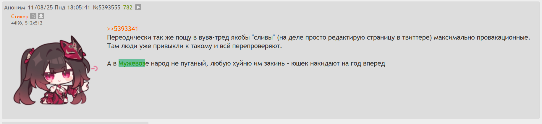 Ежедневное напоминание о том, что в треде по вуве сидят хорошие ребята и дружные, я не перепутал тред, просто сообщаю вам, лучше заходите туда как можно скорее, спасибо, удачи