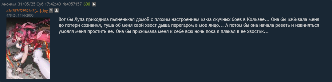 >>5396678 >Паймонам свидание с брантом и геной и новым китайским падисаром Чел..... Ты не понимаешь как функционируют паймоны. Даже если сделать полноценную свадьбу с Геной, где он будет нести их на руках от первого лица с полной интерактивностью - они все равно изойдутся на говно потому что где-то там синий процессор сможет поцеловать Шорку. Паймонам не нужно чтобы дали что-то им - им нужно что бы не дали что-либо тебе, понимаешь?