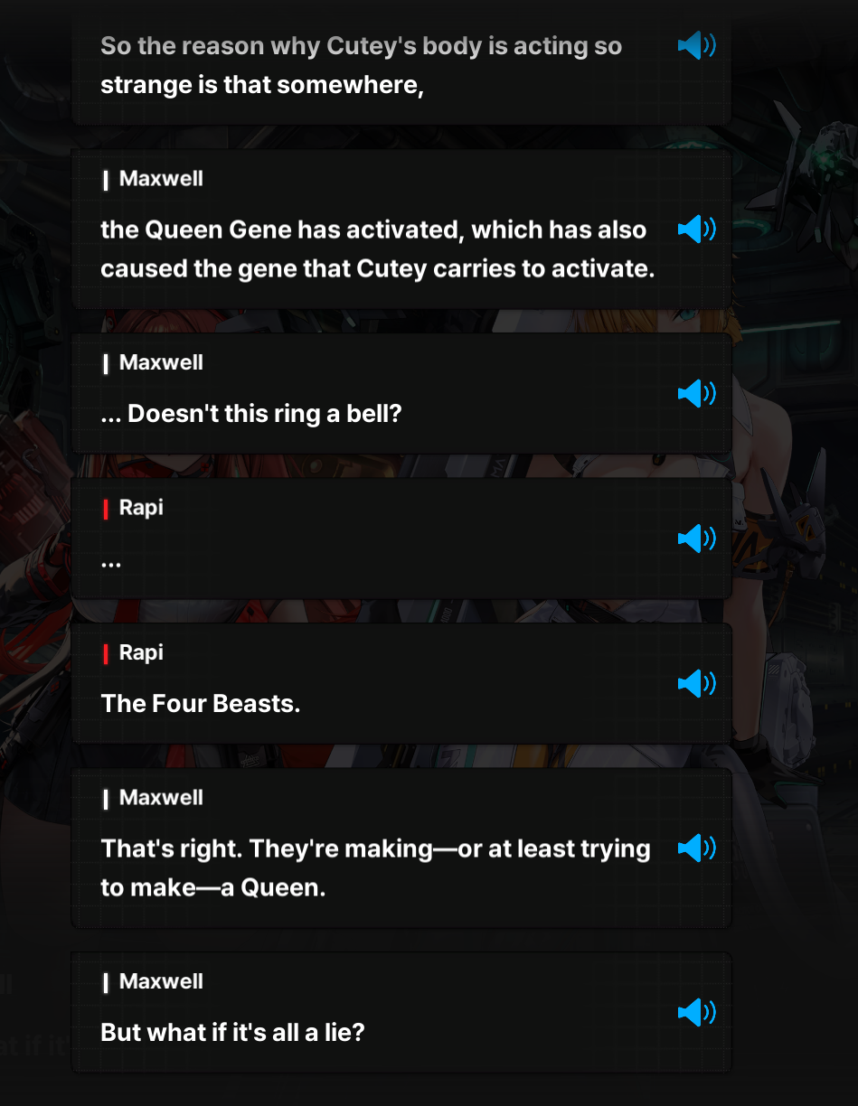 Буквально два лучших сквада оказались недостаточно сильны и прошли через какие-то улучшения, чтобы соответствовать новым угрозам, пару месяцев назад в арке просто пробили дыру и еретик вторгся, спиздил второго и съебался без проблем. Пилигрим с очевидно мутными намерениями сидит внутри арка и че-то делает. Дай бог квадратный километр земли, который еще ни разу не был атакован и не может быть использован как оборонная точка, так как нихуя не известно. Только только получили новую технологию, которую надо пиздец как исследовать, модифицировать под их оборудование и научиться воспроизводить и чинить, на это нужно куча времени и людей, обучать их всё такое. Буквально в ивенте нам показывают каких-то рапчуров-волков, про которые нихуя не известно, кроме того что они еще и своих ебашат. ХОть что-то известно только про 2-3х еретиков из 5 примерно, про королеву неизвестно нихуя. Сейчас вообще не время нахуй для третьей войны блять! Только только начали подвижки к исследованию вапауса блять, улучшите остальных никк, научите коммандеров реально сражаться, а не дохнуть как мух. Надеюсь это пример хорошей писанины, когда персонаж не имеет всего контекста и думает из своих ограниченных взглядов, а не тупой автор рассказывает нам сюжет через мысли рандомного мимокрока, у которого даже внешка не поменялась после перерождения в Никку.
