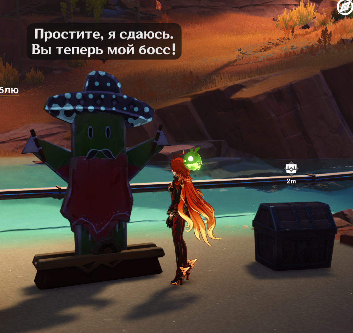 Если она намекает на табибиту, то она крайне не права. Даже в Натлане, даже в Разломе, да хоть в Энканомии, табибита никогда не одинок, ибо с ним его лучшая подруга и легендарный проводник по Тейвату — Пеймон!