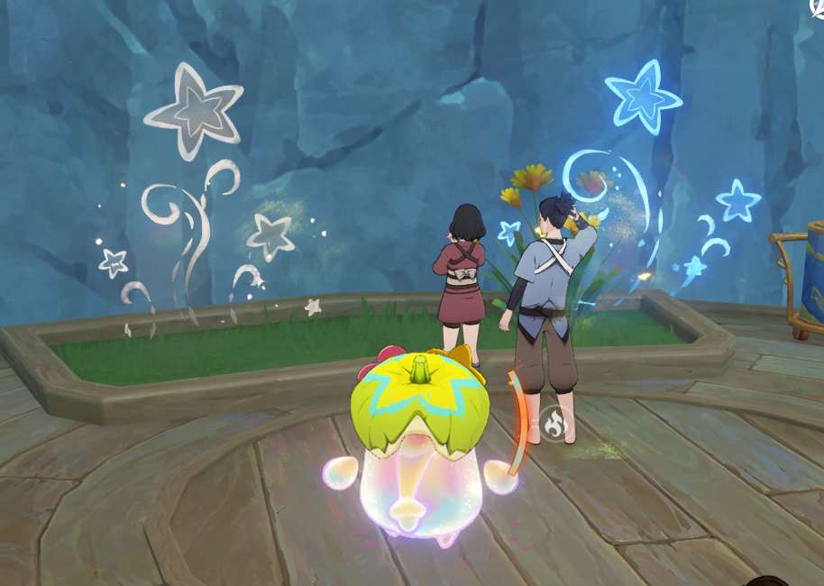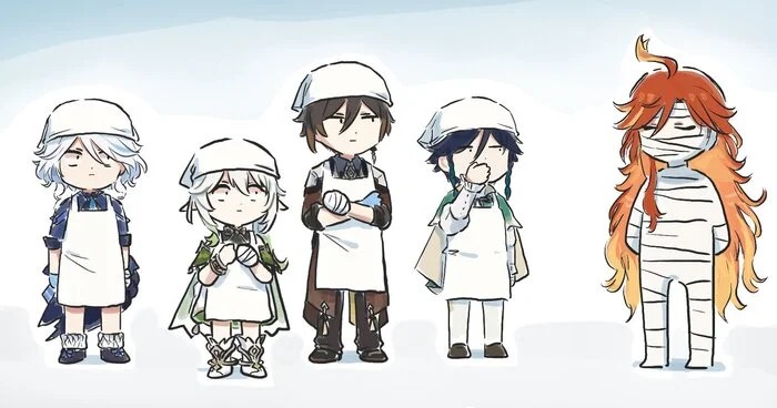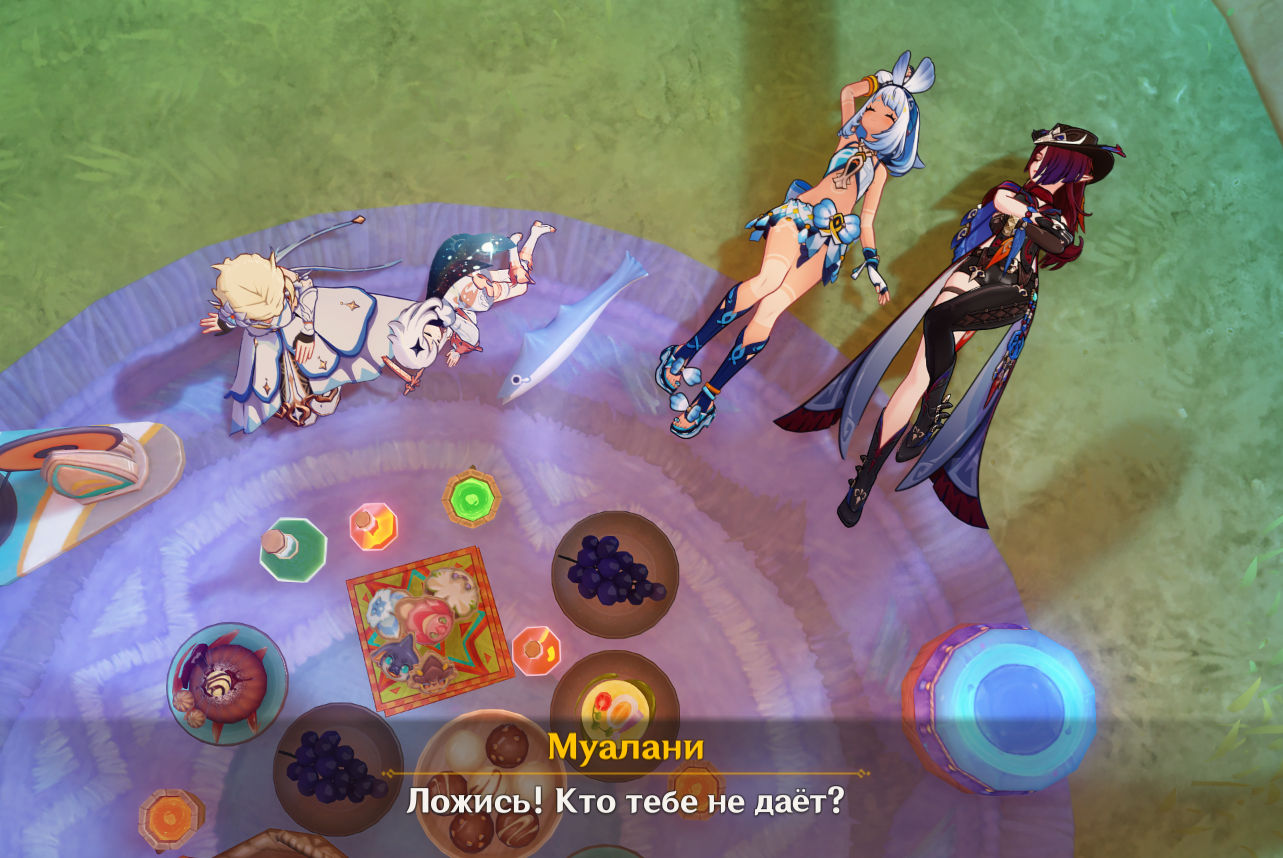 Дошел до метки, ушел на кухню, сделал себе салат из огурцов с помидорами, перекусил, всё это время слушал как паймон с муалани и беннетом о чем-то бормотали не прерываясь на F. Наверно, охуенно быть скриптовичком и не трястись за аккаунт с другими гачами.