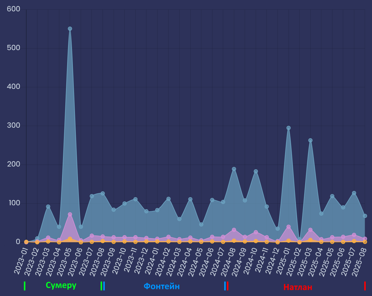 Монд, Лиюэ и Инадзуму пропустил, вкатился в Сумеру, в самый разгар парада падисаров и убийства Дехьи (Как сейчас помню пожар в треде во время стрима где сказали, что она стандарт). Благо у меня как у ньювжушка был огромный запас контента и девочек для кручения из прошлых регионов, так что пережил эту черную страницу в истории игры относительно безболезненно.