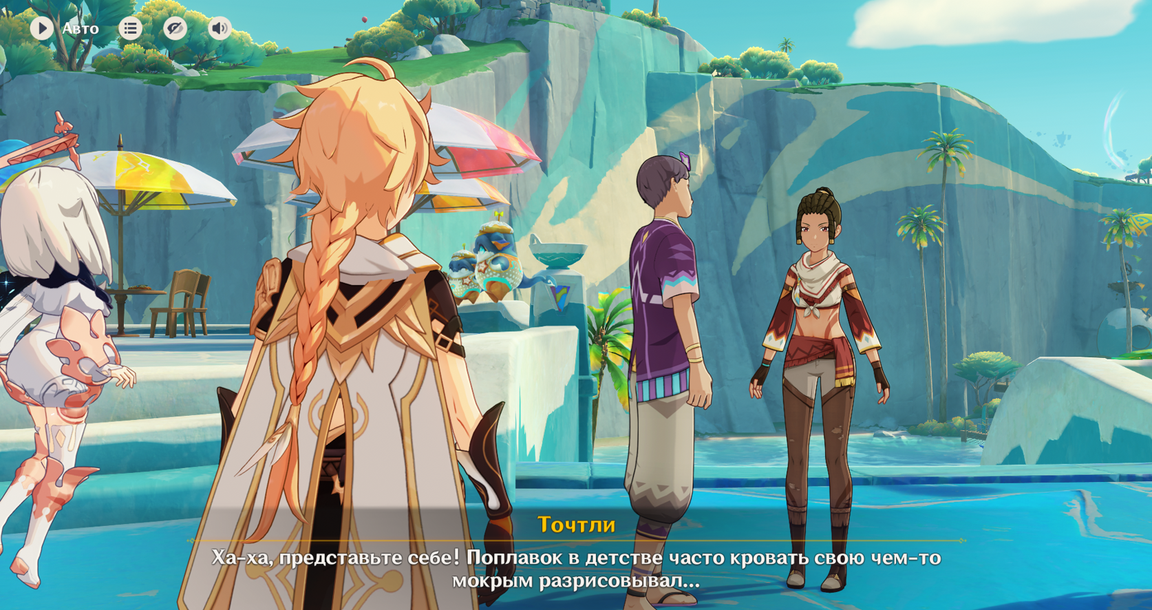 Я не знаю, КТО блять эти люди, кто срали и срут на Натлан, но Натлан это просто лучший регион в плане повествования. Персонажи, которым ты реально сопереживаешь, темп повествования, вовлечённость в сюжет - всё это на голову выше того, что было раньше. Я реально чувствую себя частью истории, а не камераманом. В сюжетке даже маленькие мини-игры делаются, чтобы я лучше прочувствовал собственное участие. Например, где за Качину пиздишься на арене или летаешь на воздушном шаре, спасая людей. Сайд квесты расширяют истории основных персонажей, делают картину мира более цельной, а не повествуют о том, как нпс №3254346346 покакол. Да к тому же многие из них ещё и озвучены! Плюс в диалогах проскакивают всякие приколы, шутки, просто забавные фразочки - то, чего Ляо раньше по какой-то причине боялся как огня. Просто очень круто. Раньше я сайд-квесты старался проскипать, а сейчас с интересом прохожу. Именно вот такой я всегда и хотел видеть игру.