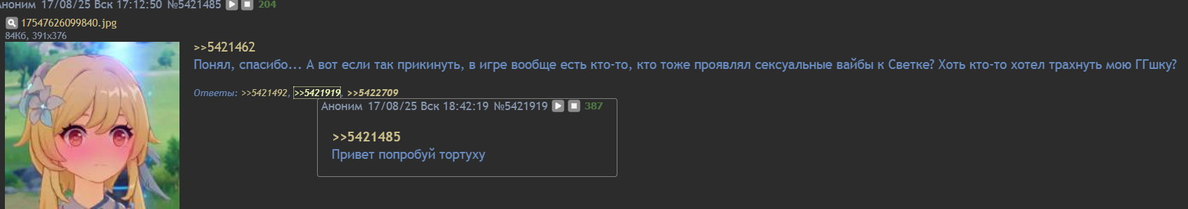 Потом вернулся только ради треда по геншину. А потом его выпиздили в /gacha резервацию...