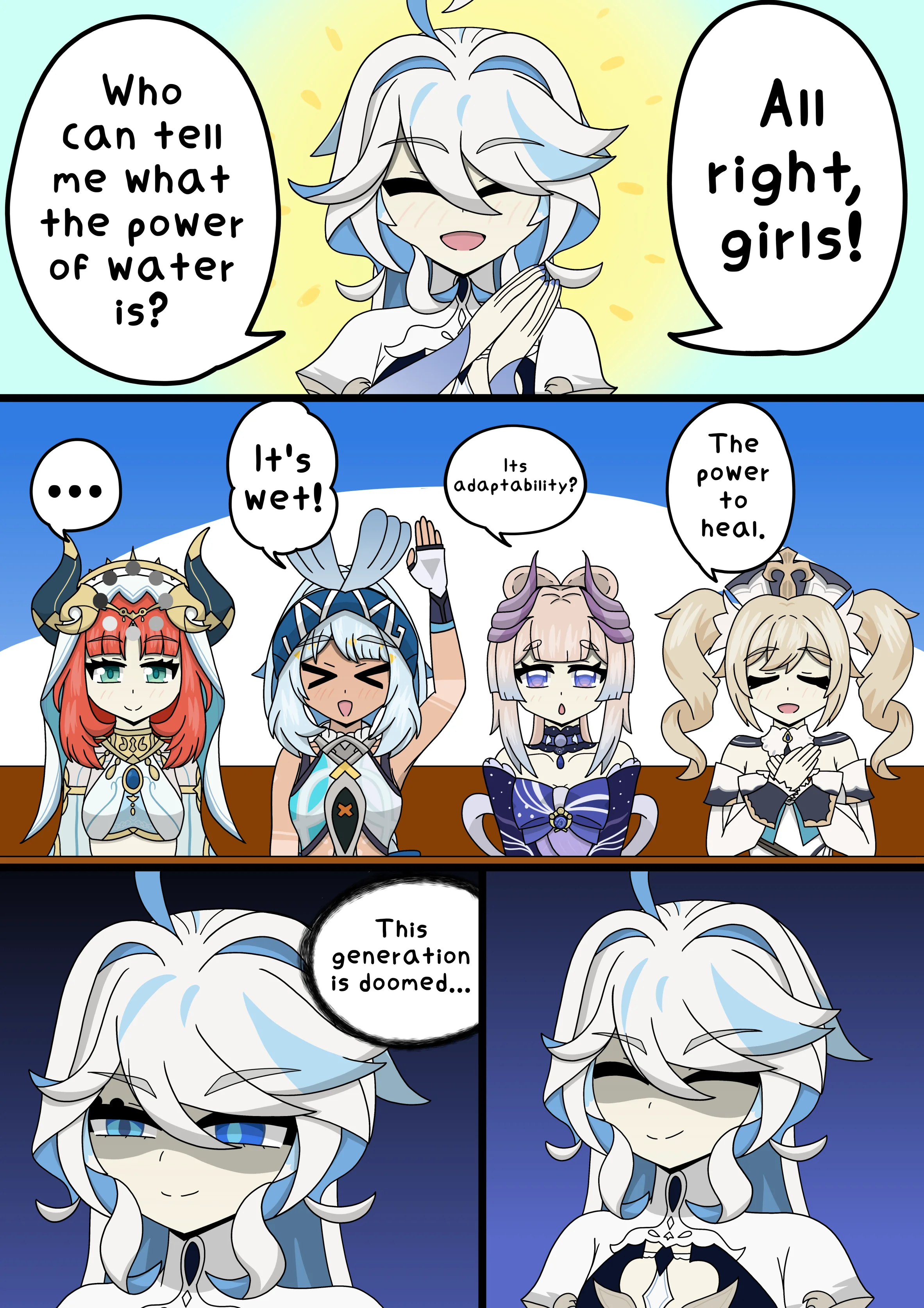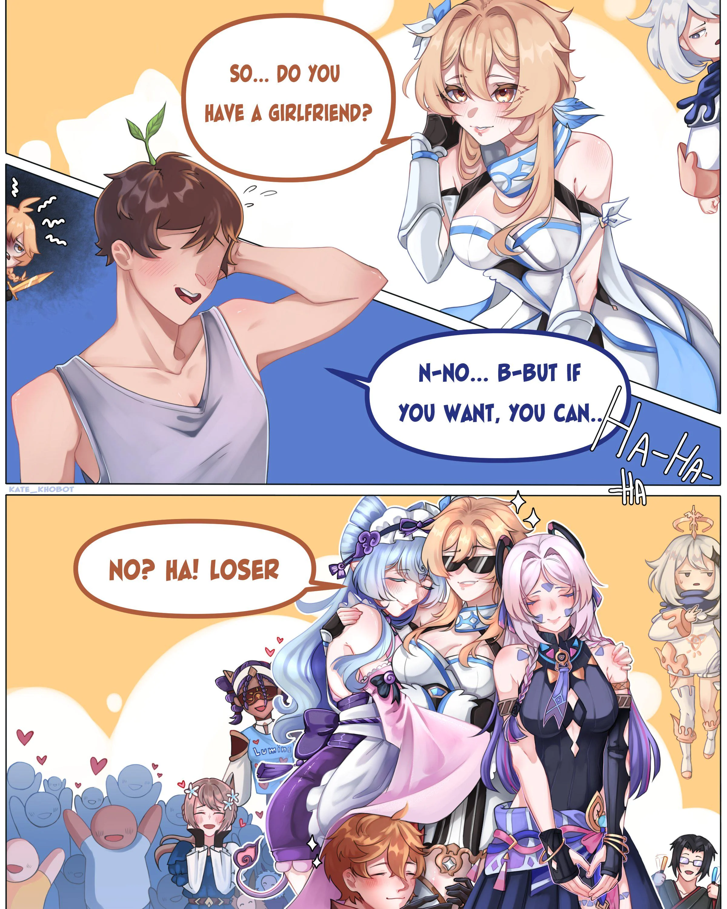 Тема: нарисовать любого чемпика Геншина в виде мема "держи (you)" (чемпик даёт юшку, держит табличку с юшкой, чемпика ебут юшкой, что угодно, ограничений нет, можете оригинальничать как хотите)