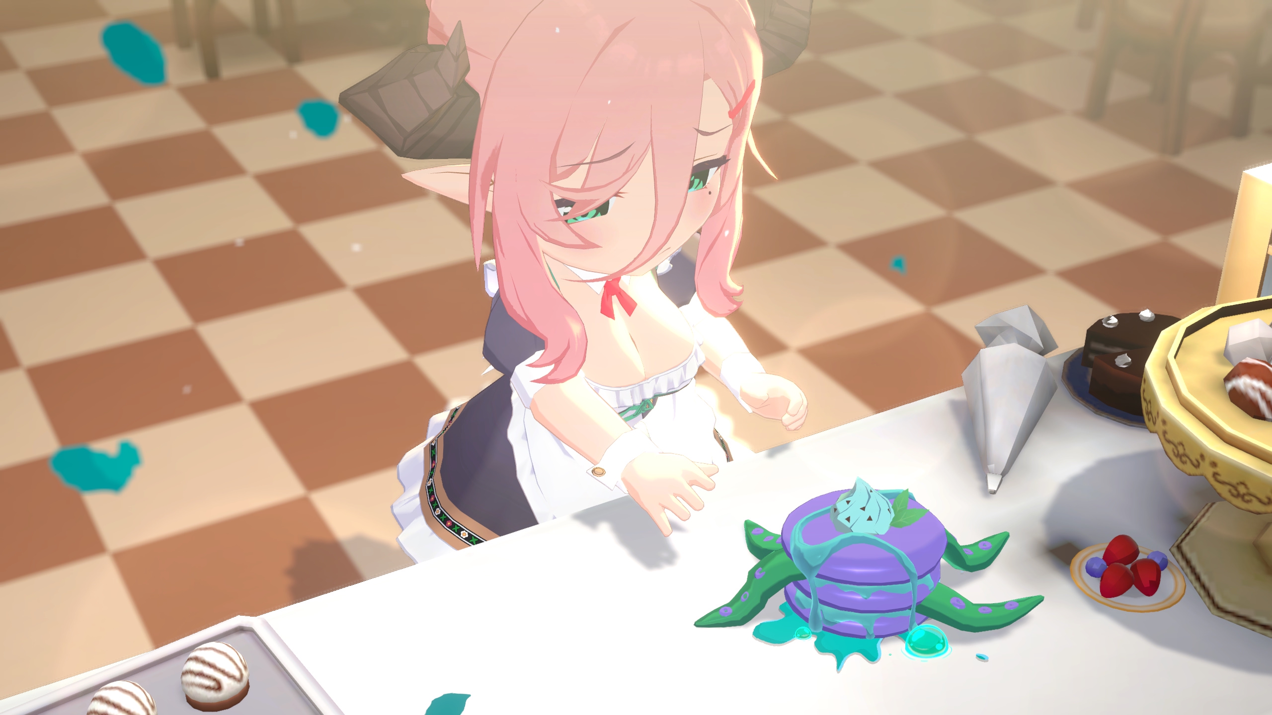Из четверки вторая самая лучшая по дизайну после зомби с ружжом. Выглядит как кроссовер между лолей и бимбо. Лоли-гяру. Маленький модный бимбо-унитазик.