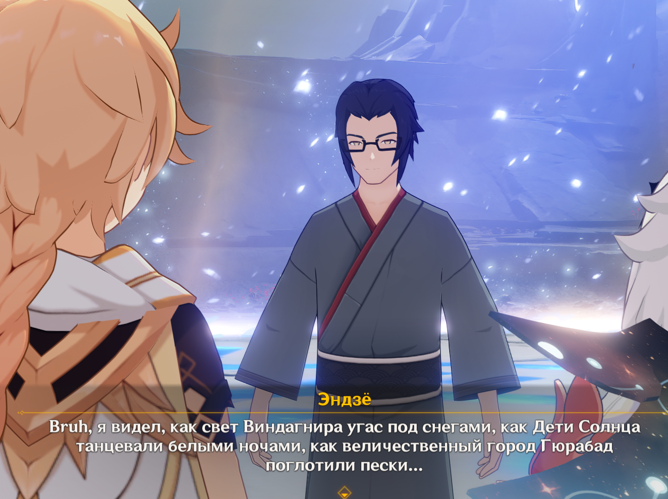Ну а дальше - тут смотря что считать последним, либо то что произошло с близнецами (нашли в пещере женщину-хиличурла из другого "времени" или вообще параллельной реальности, получили ключ от капсулы нашего космического корабля, узнали про то что наш родственник готов Тейват пустить под откос ради нас). А в эвенте как и описал, нашли родителей Бениса в формате духа, погуляли пару минут по Пепельному морю, узнали что его кто-то нехороший сдул, с бабкой пообщались, узнали что Эндзё уже много путешествует по миру и заебался.