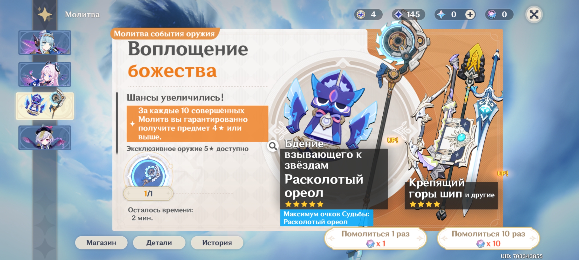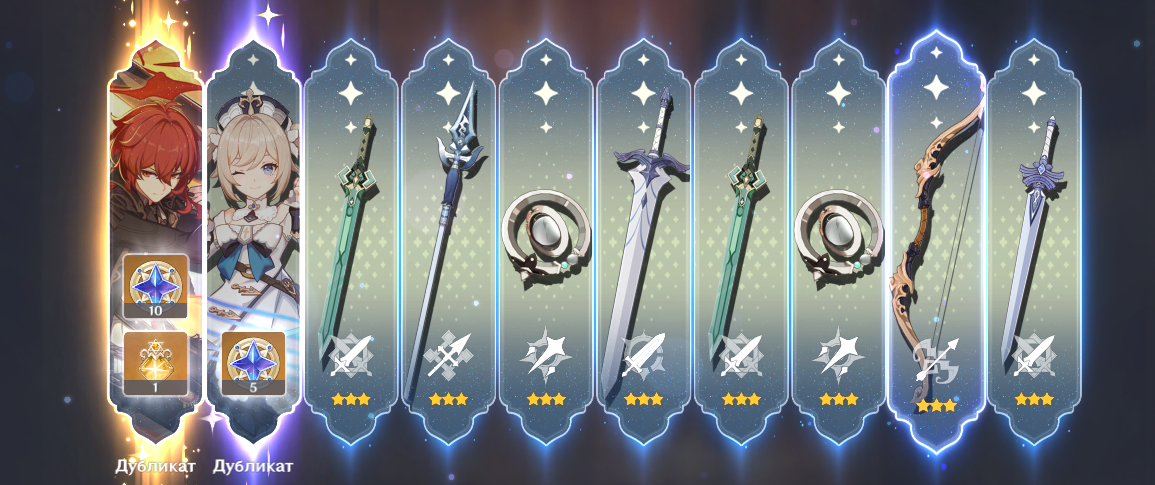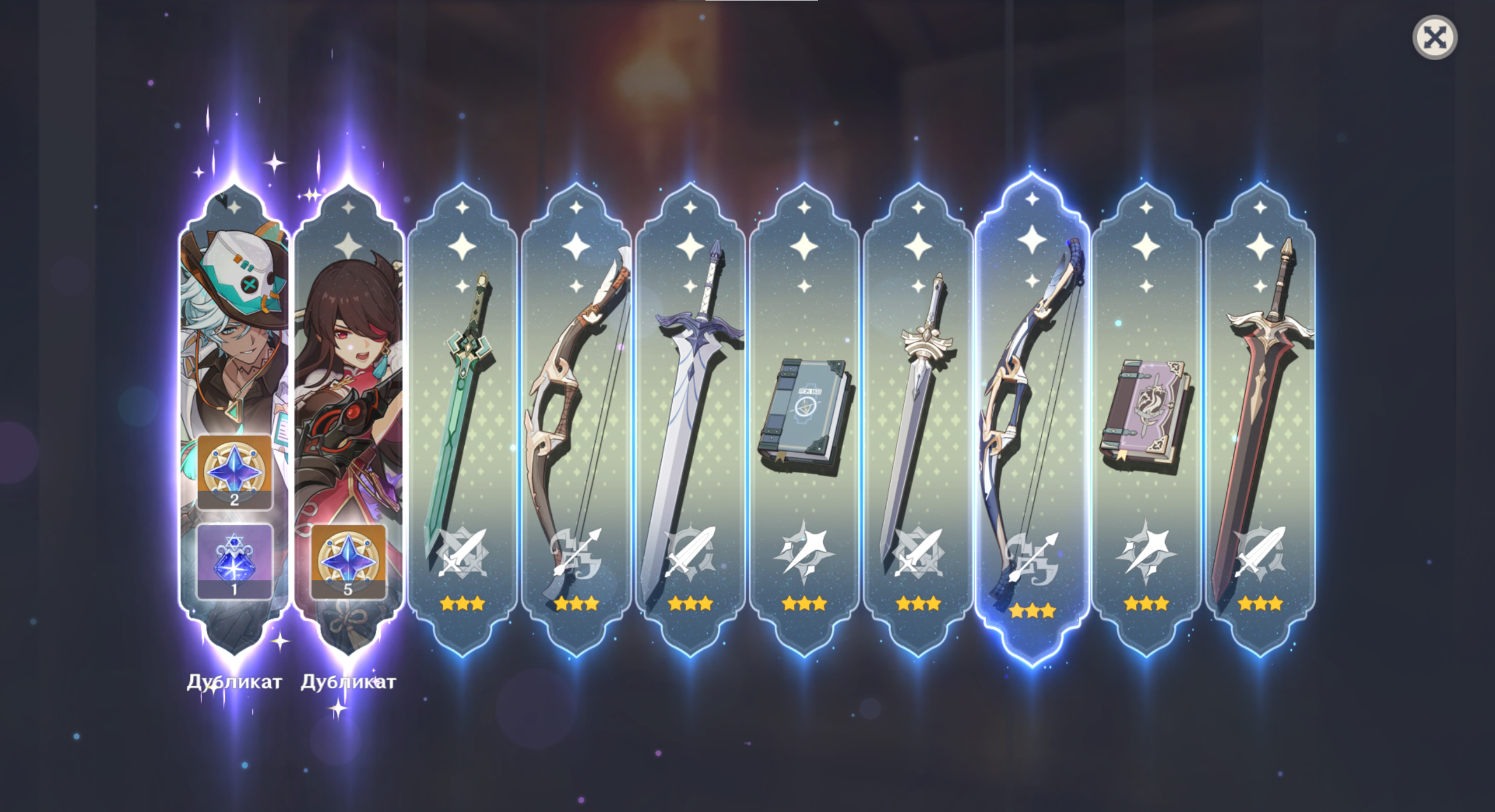 Что-ж, последний шальной ролл сделан, получил лук три звезды... Ну значит Ситлали не будет украшением в моей галерее. Ладно, перетерплю, ничего страшного. Зато у меня до гаранта наверное осталось всего двадцать круток, а это значит следующий персонаж будет стопроцентно взят. Лучше засолю на кого нибудь интересного.