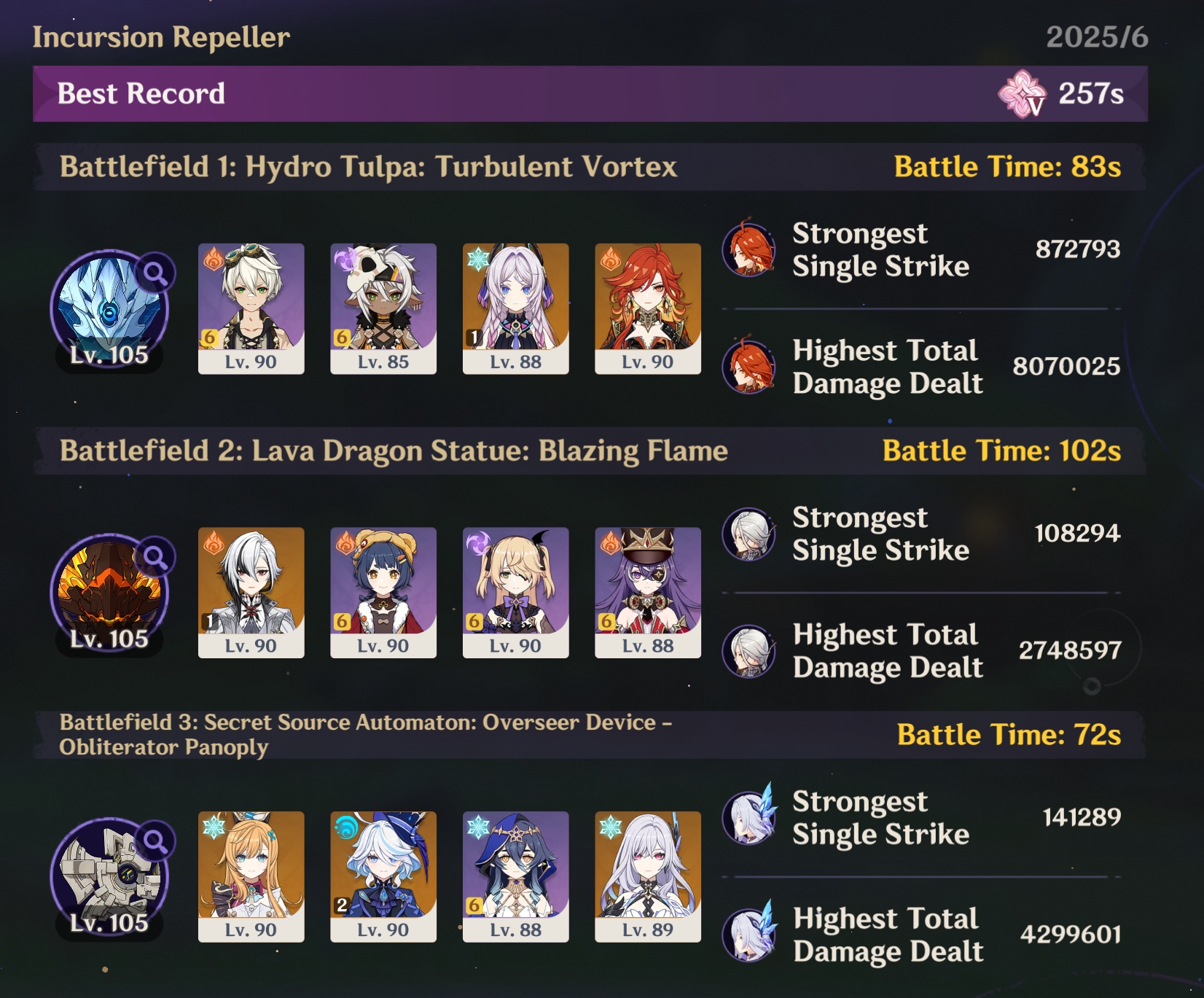 А я только лавового монстра ретраил, пытался пройти С0Р1 Акулкой, но быстрее не смог, увы. Ещё тут Скирк была недокачанная, водил её на тульпу, ловил ваншоты с Моной. Заменив Мону на Лайлу, кое-как смог пройти впритык (с навыками 8/8). Написал, кстати, что к ивенту нейтрален. Не нравится прогрессирующая кокблочность под конкретных персонажей (сейчас еще ладно, а вот в следующем так вообще).