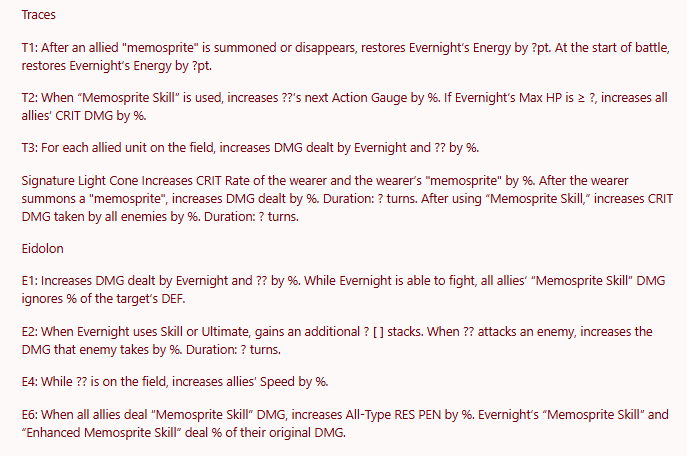 >>5382081 >>5382096 Следим за руками Grants "Military Merit" to one designated ally character and gives Cerydra 1 points of Charge. Maximum Charge is 8 points. When Charge reaches 6 points, the ally character's "Military Merit" automatically upgrades to "Peerage" Занчит, что набрав стаки, чарик переходит в "Peerage" Increases the CRIT DMG boost for Skill DMG by 72% for characters with "Peerage," increases All-Type RES PEN by 10% Значит, что бафф работает только в состоянии "Peerage". То есть после набора стаков.