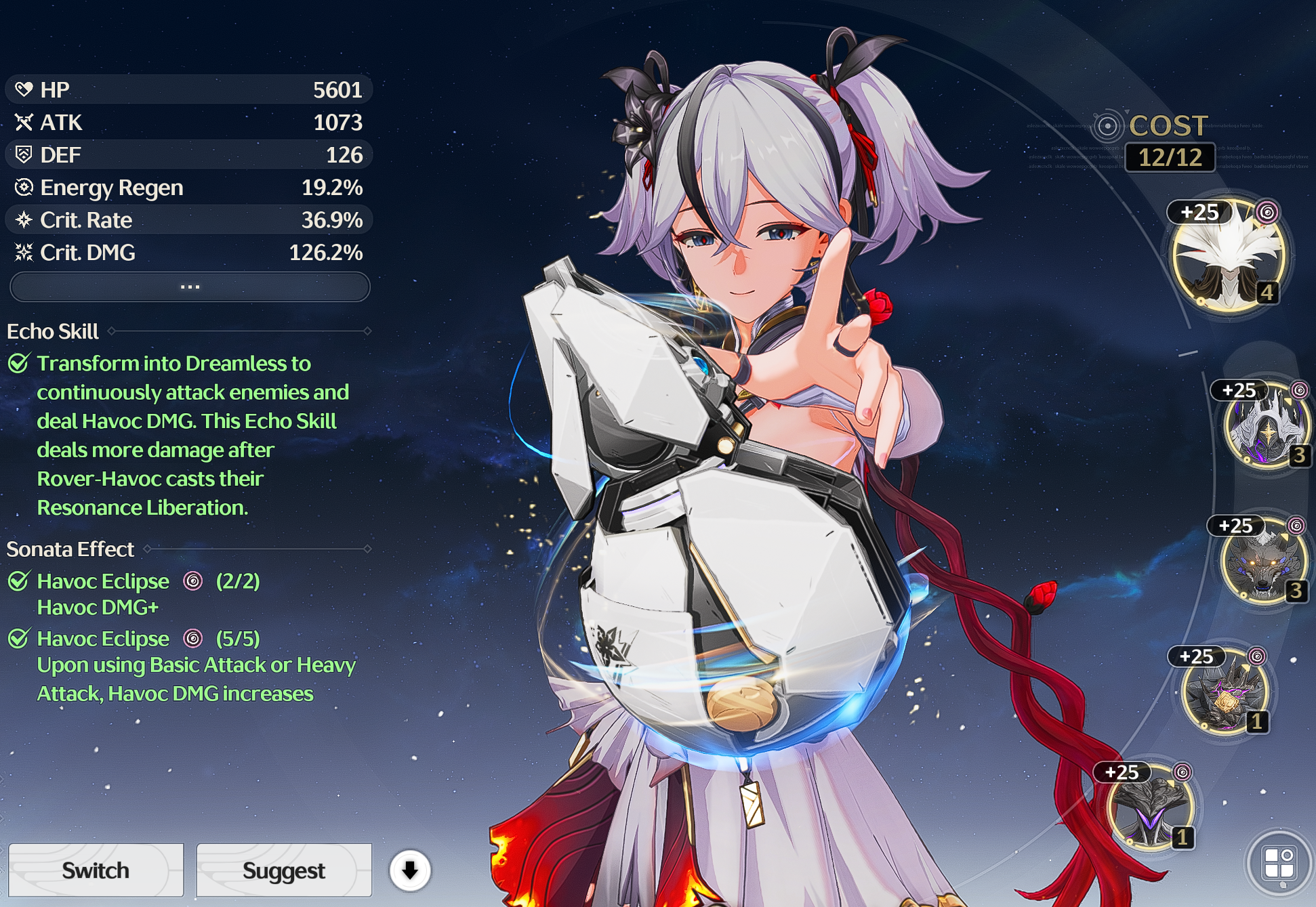 У тебя буквально разница между персонаж критует, у которого ещё и + к КУ, и не критует. С Шоркой тебе не нужно на персах иметь 80% критшанса, ты можешь эхо на КШ заменить на КУ, и иметь 75%+ КШ.